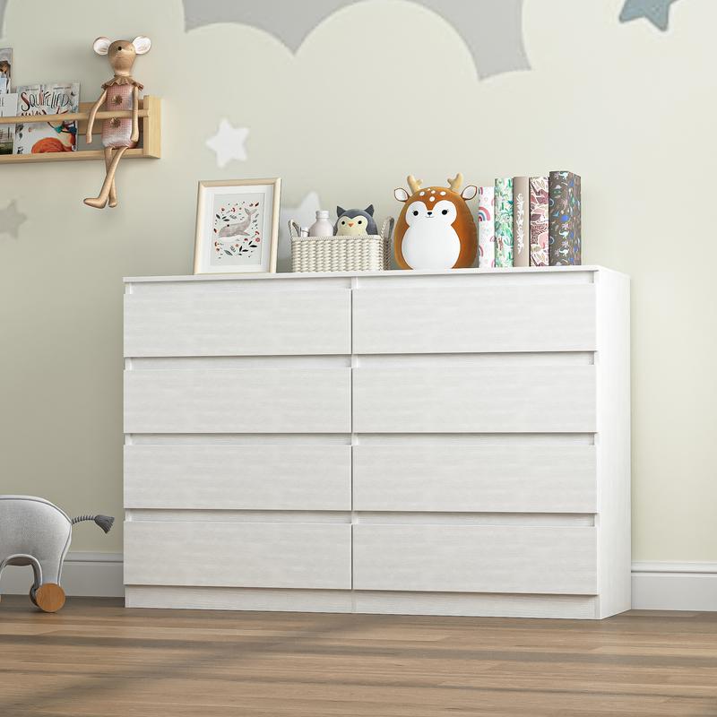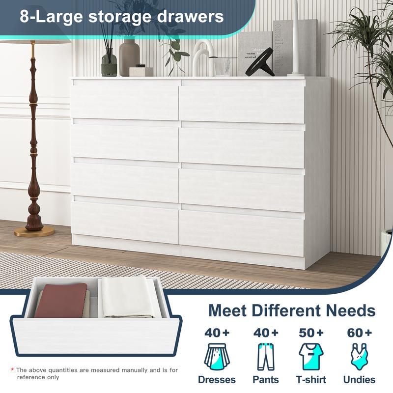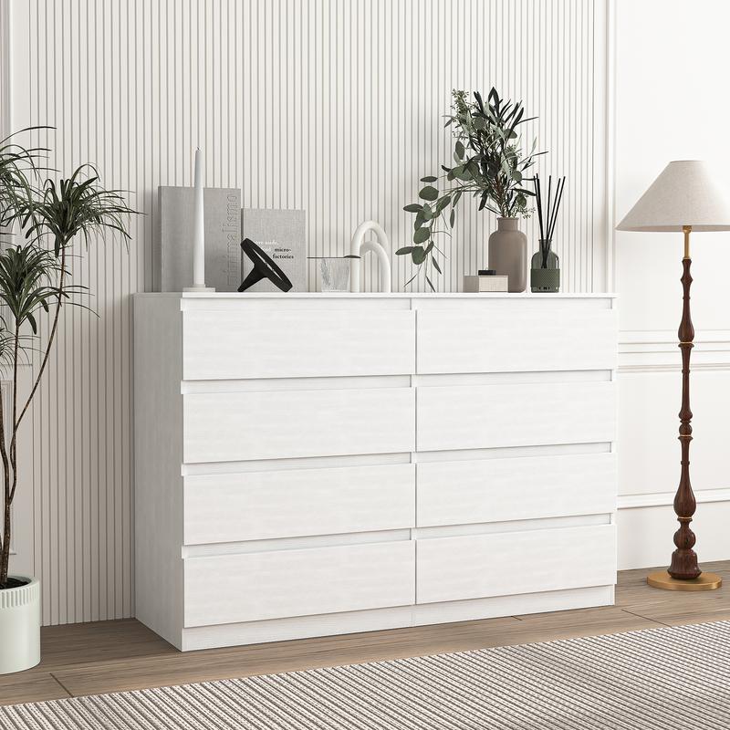 ·【Quality Material】The white chest of drawers handle free is made of thicker particle board, the compact construction enhances the stability and effortlessly holds the entire weight. Matte waterproof surface makes this 8 drawer drawer easy to clean and dry out. Made of high-quality metal slide rails to ensure that they stay smooth and make no noise during your daily use.