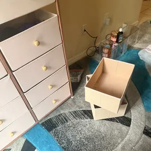 Crafted from cationic fabric with breathable, non-woven synthetic panels, this dresser is both durable and gentle for everyday use. Drawers glide smoothly and close securely. For cleaning, simply wipe with a damp cloth and air dry.