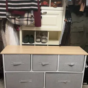QUALITY CONSTRUCTION- Made from reliable metal frame and durable MDF wooden top; 5 removable and foldable drawers; Easy pull plastic handles help conveniently open and close the drawers; 4 adjustable plastic feet help protect your floor from scratches.