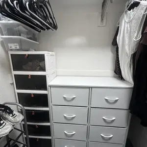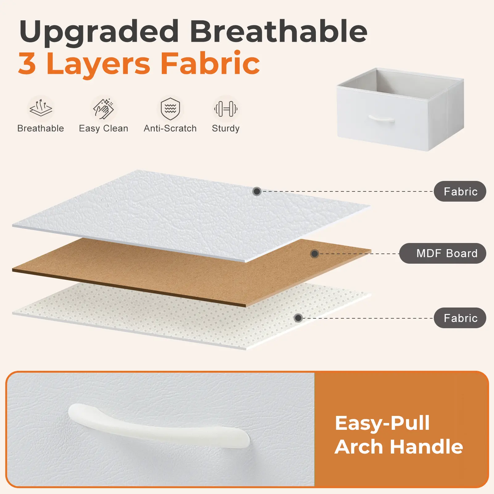 • [Quality Construction] This fabric dresser combines water-resistant MDF board with a durable steel frame. a cross support bar to make it sturdy under load 66lb.Anti-tipping accessories are also equipped to prevent accidents. With 4 adjustable feet, you won't have to worry about stability, and it is also adaptable to different spaces.