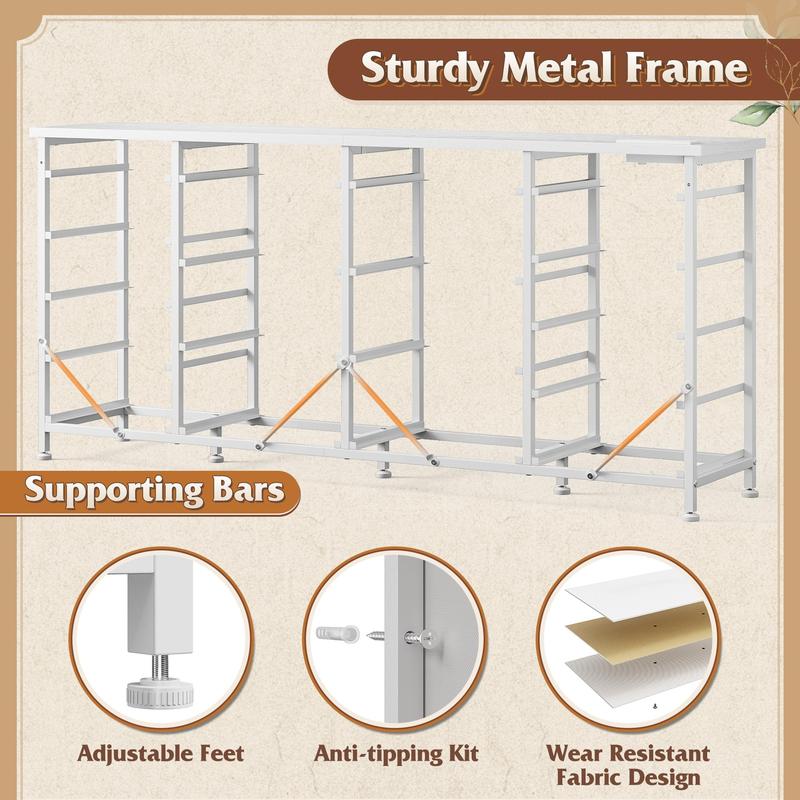 ·Sturdy, Safe and Stable-The large dresser features a sturdy metal frame and a thickened wooden top to provide stable support and ensure years of use. The fabric dresser is made from high quality, durable fabric and has handles that allow the drawers to pull out and close smoothly. Equipped with anti-tip kits to prevent the TV stand with drawers from tipping over, which is friendly for your family. 7 adjustable feet can prevent wobbling on uneven floors and protect the floor from scratches