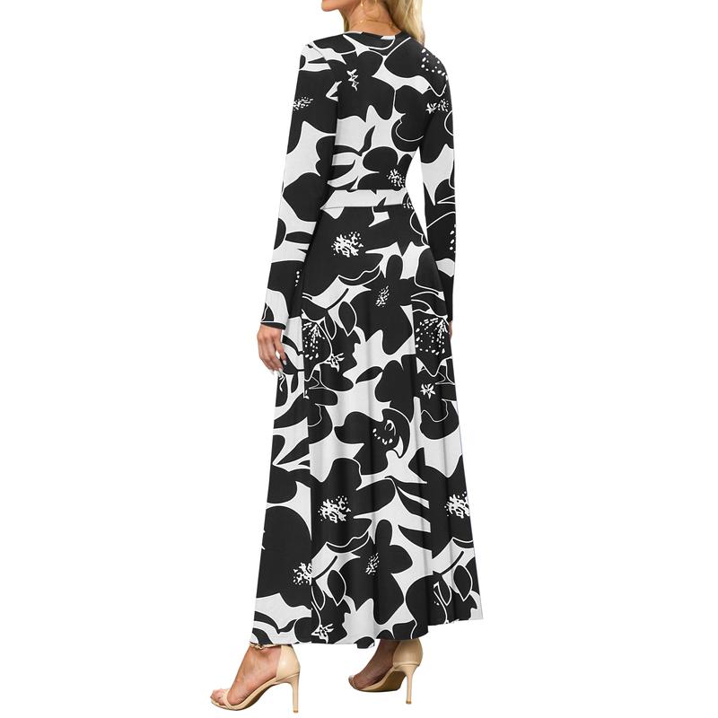 AUSELILY Maxi Dresses Long Sleeve Ankle Length Floral Print Flowy Dress with Pockets