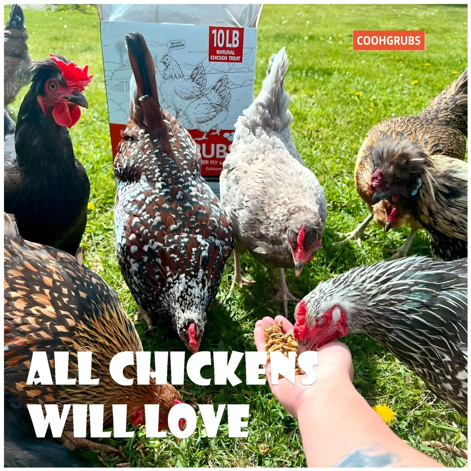 Mis pollos aman COOHGRUBS 🐓✨. Son larvas secas, 100% naturales, con mucha proteína y calcio. ¡Los mantiene sanos, fuertes y felices! 💛