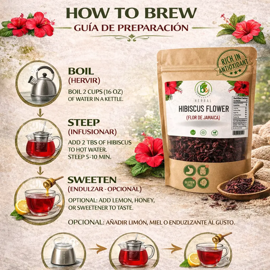 “Absolutely love this hibiscus (flor de jamaica)! 🌺 Fresh, potent, and vibrant. Makes a beautiful deep red tea, hot or cold. Flavor is tart, clean, and refreshing. Great quality packaging and fast delivery!”