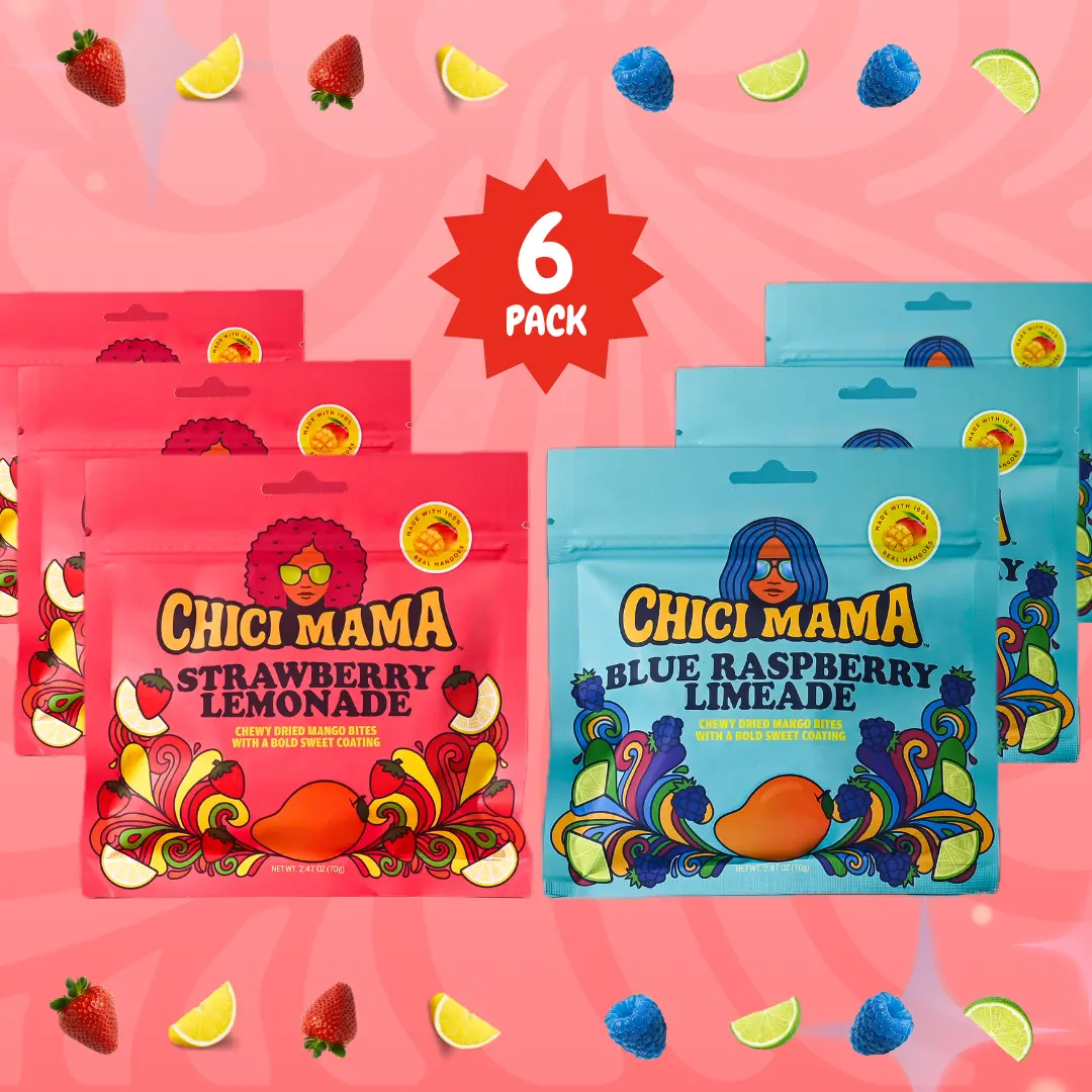 Our most-loved flavors, bundled together. This 6-pack features Chici Mama’s best-selling dried mango in Blue Raspberry Limeade and Strawberry Lemonade flavors — the perfect mix of sweet and tangy for everyday snacking.