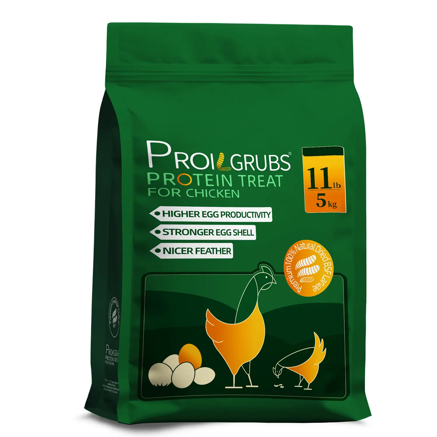 ·Backyard chickens cluck for Proilgrubs. The smell and taste are irresistible to all chickens and other pountry.