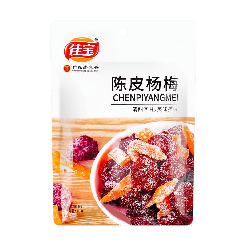 JIABAO Dried Tangerine Peel Plum 70g - Sweet & Sour Candied Fruit Snack for Tea Time & Gifts