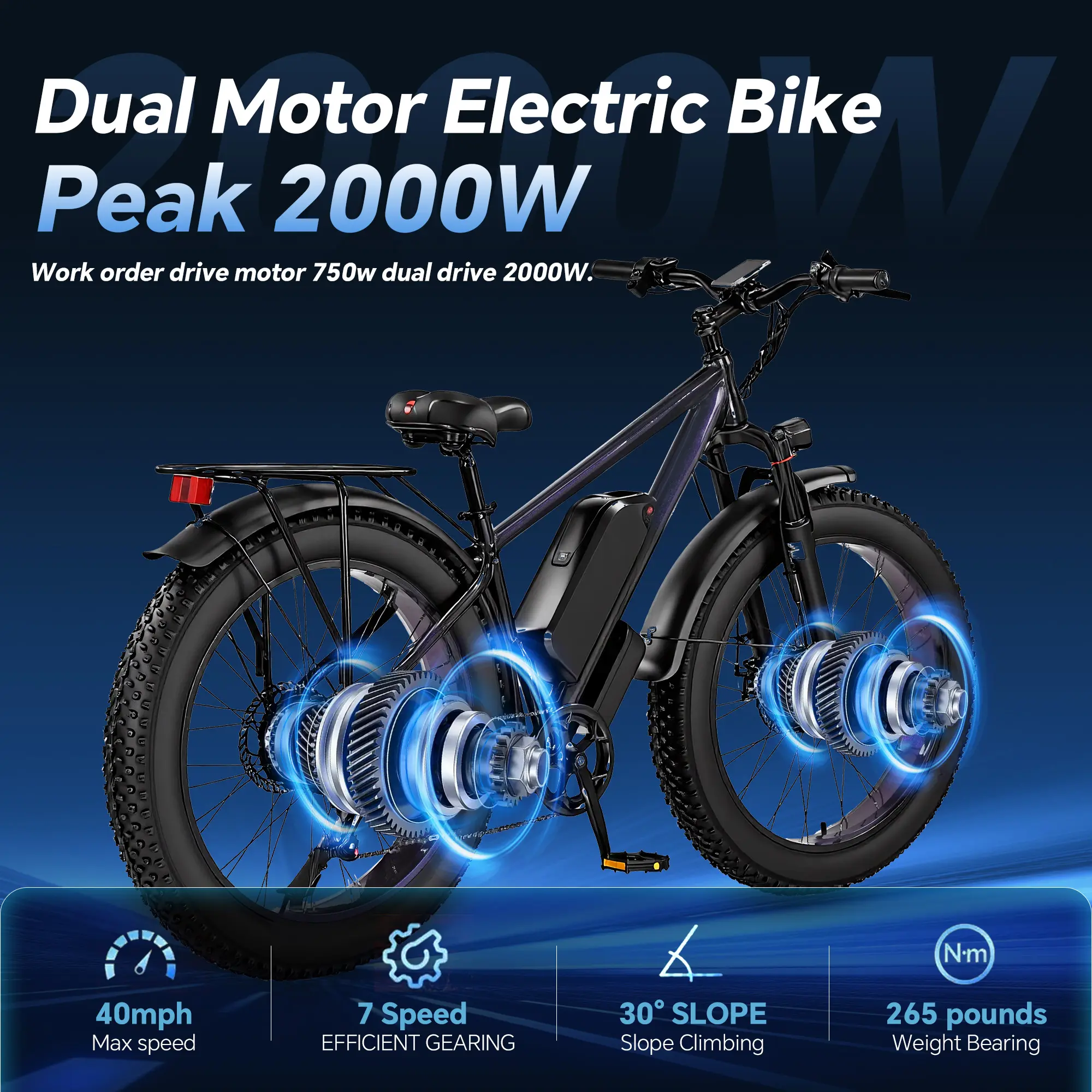 ·Powerful Performance: This electric bicycle boasts a 2000W peak power, ensuring smooth and efficient riding. 🌟