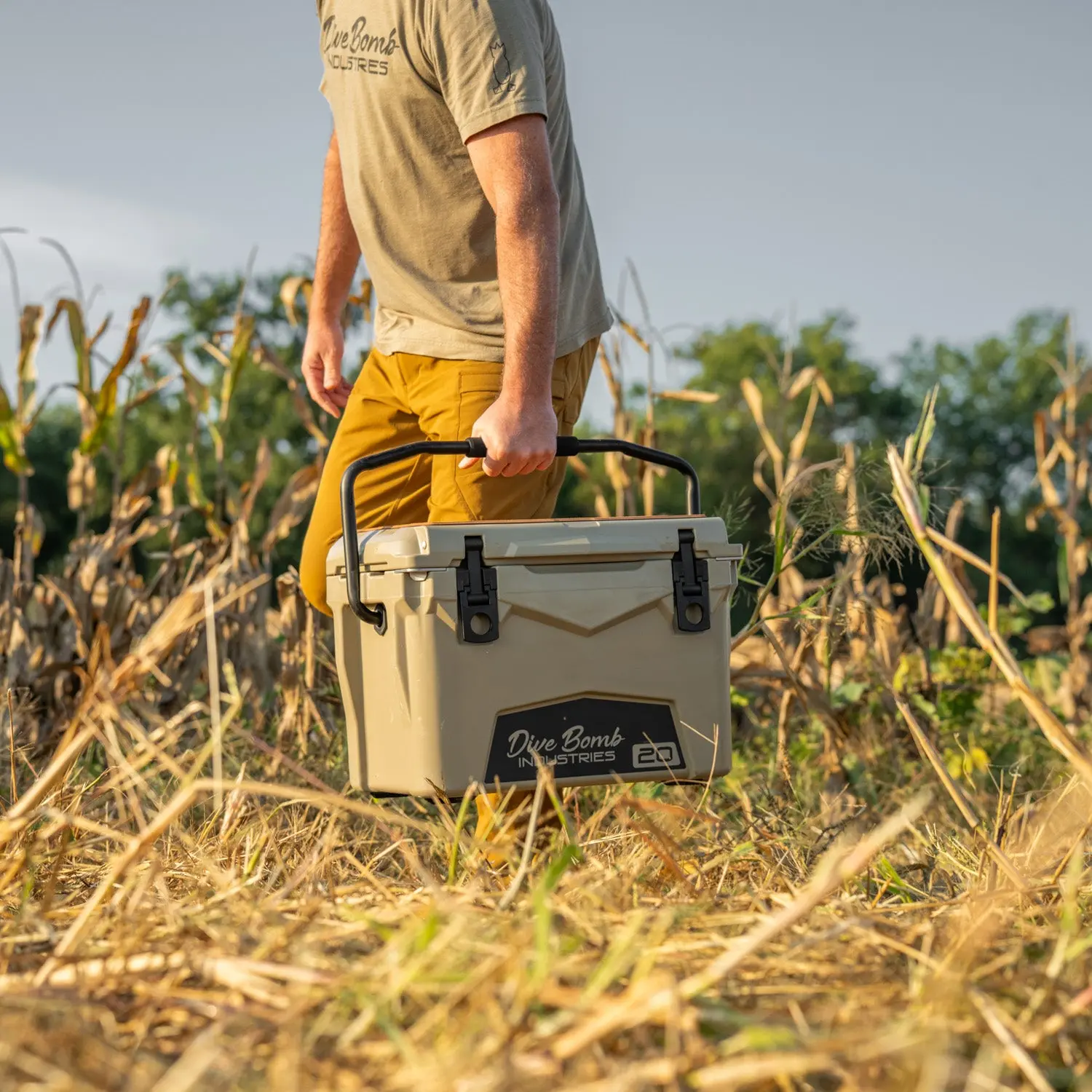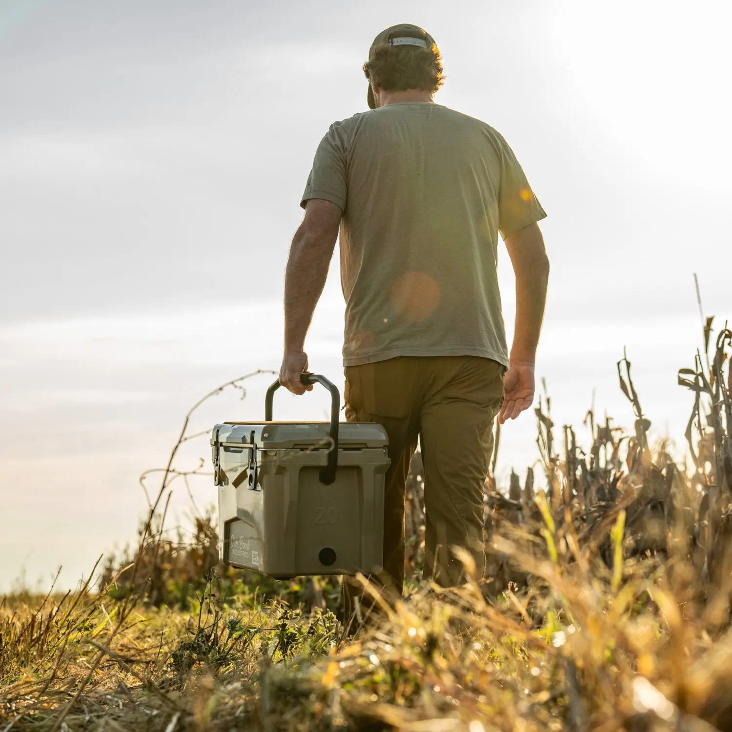 Ideal for day trips, short hunts, or packing drinks for one. Holds up to 24 cans or 20 lbs of ice with an empty weight of 16 lbs. Features an aluminum carry handle for one-handed transport. Compact and easy to maneuver, this cooler is perfect when you want cold storage without the bulk.