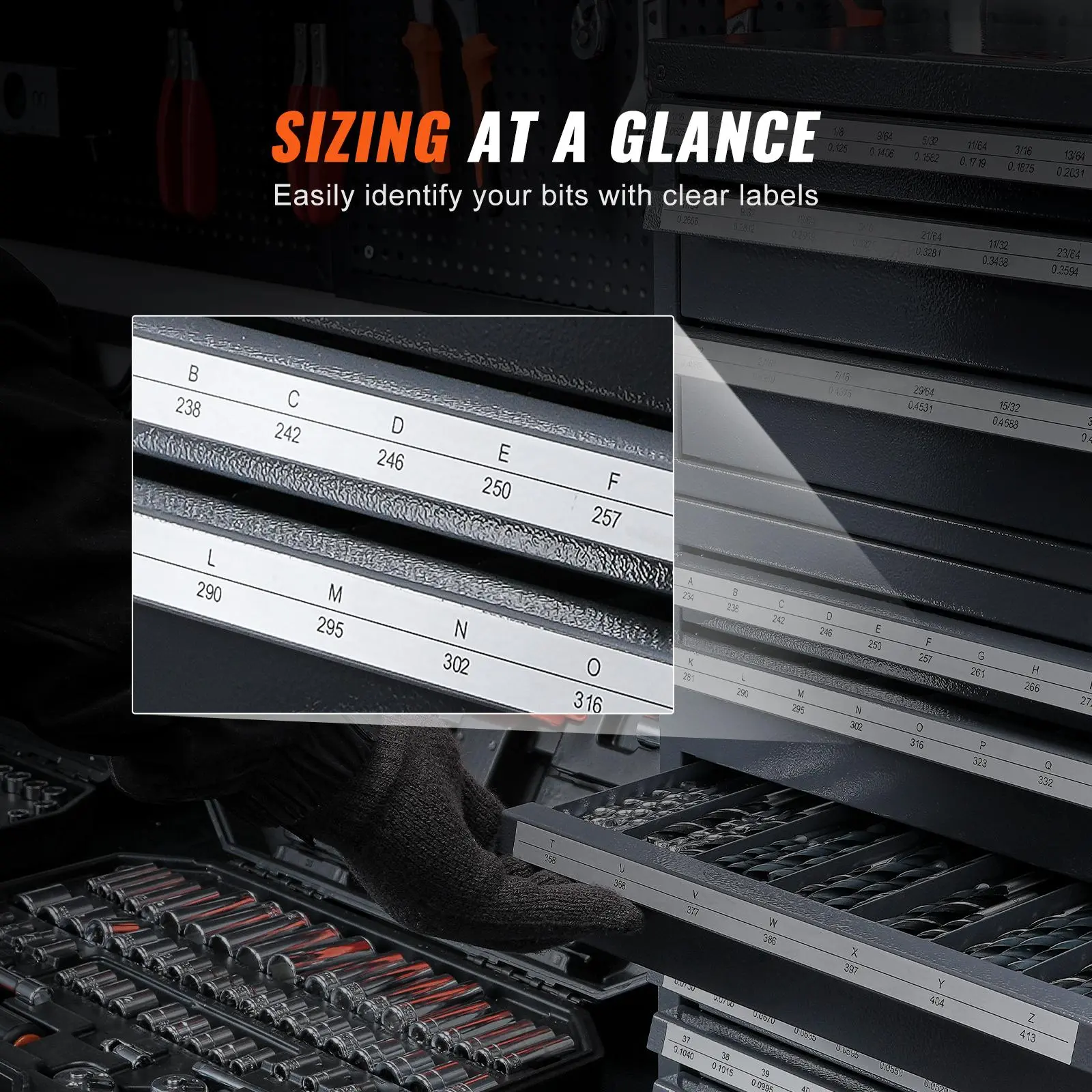 VEVOR Drill Bit Dispenser Cabinet, 3 Pieces Three-Drawer for 1/16" to 1/2" & Letter Sizes A to Z, Five-Drawer Drill Bit Organizer for Wire Gauge Sizes #1 to #60, Stackable for Drill Bit Storage
