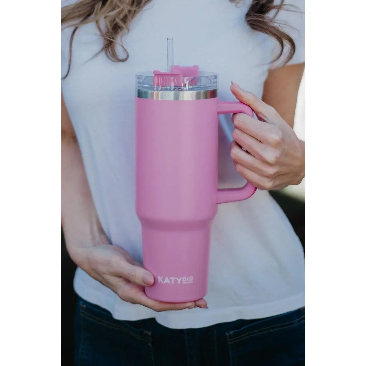 Light Pink Beach Please Tumbler Cup with Straw and Handle