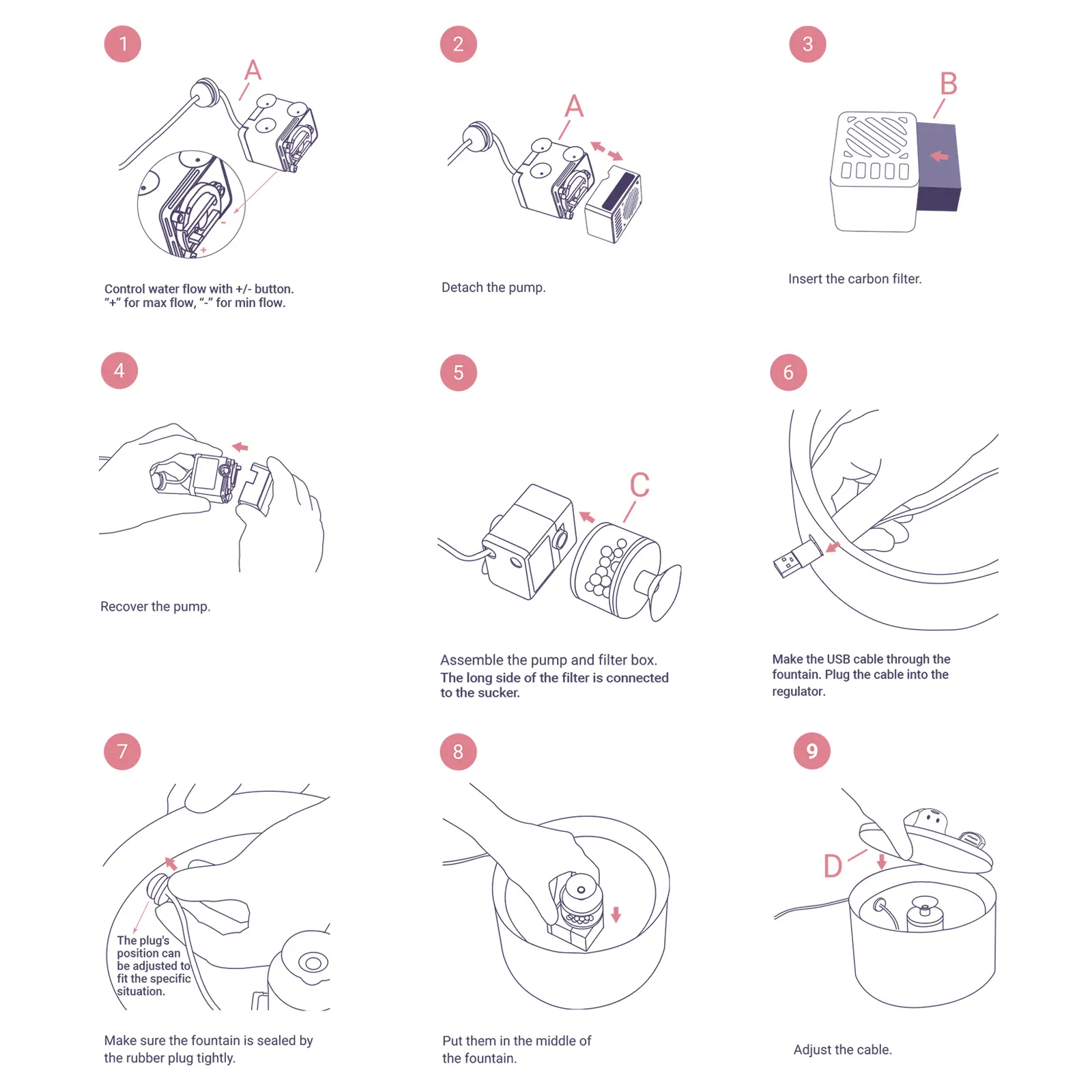 ¡Detachable and Easy to Clean: Each part of the fountain is easily detachable, making cleaning a breeze. Simply disassemble, clean, and reassemble for hassle-free maintenance.