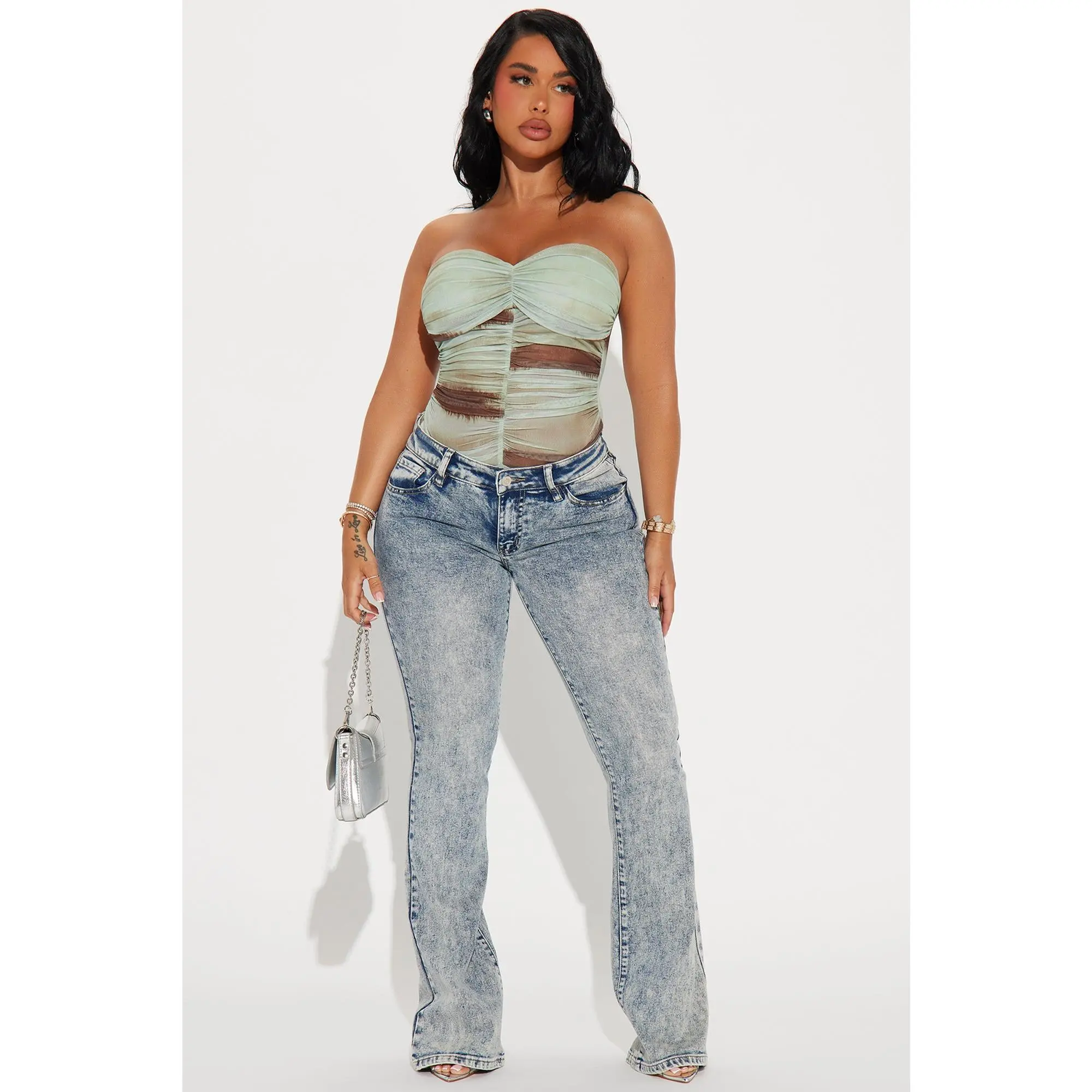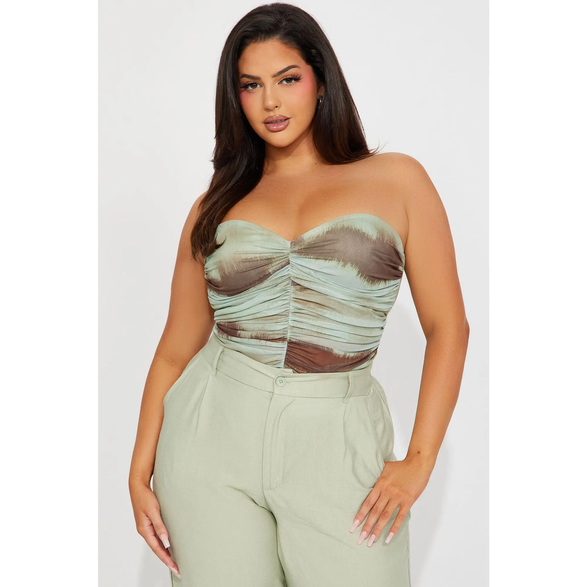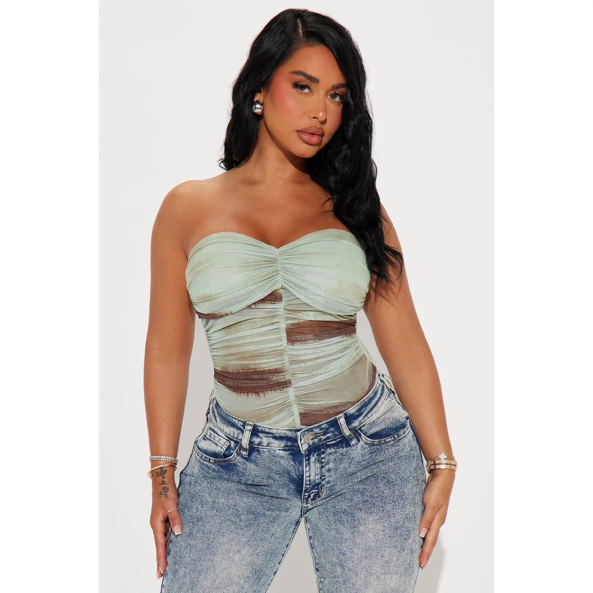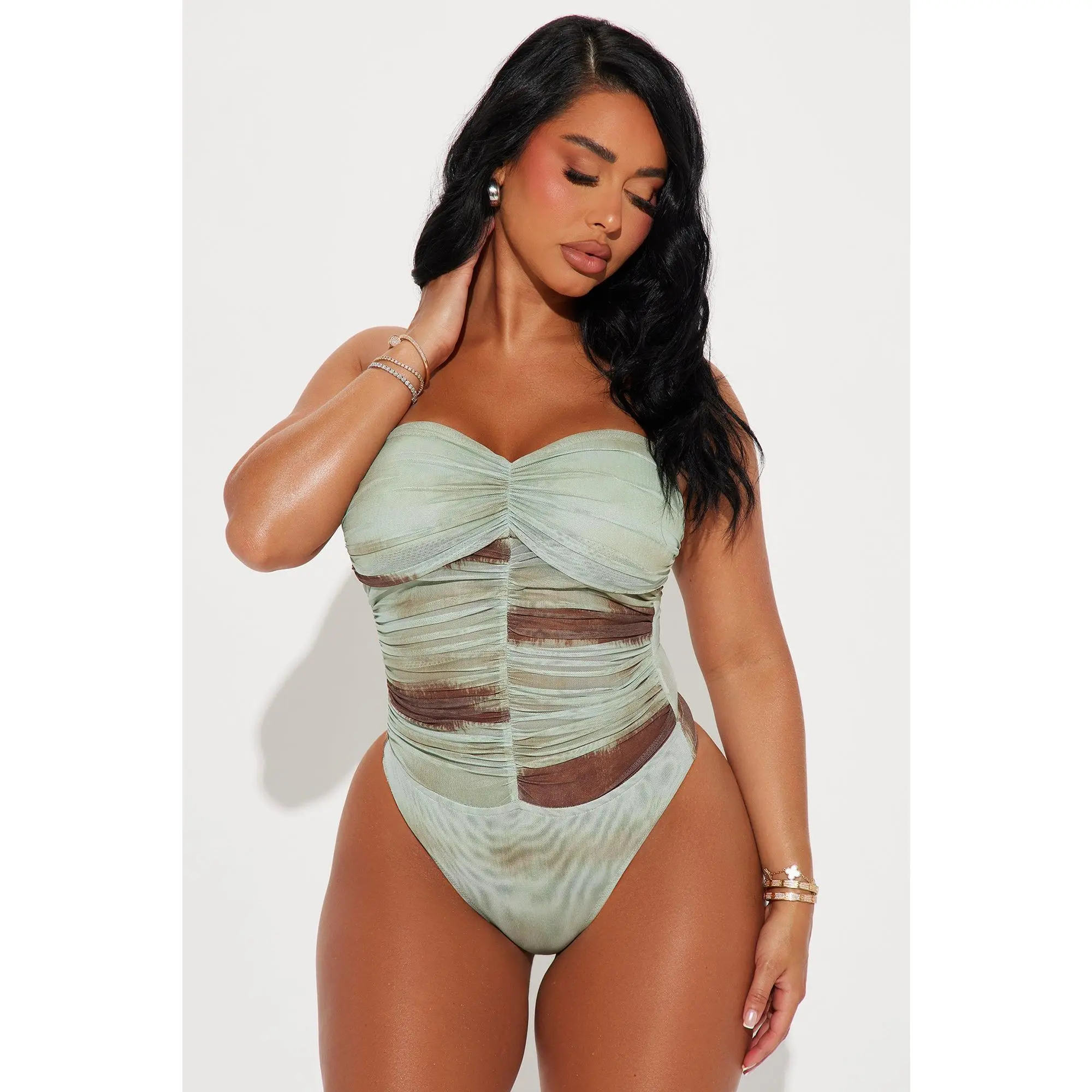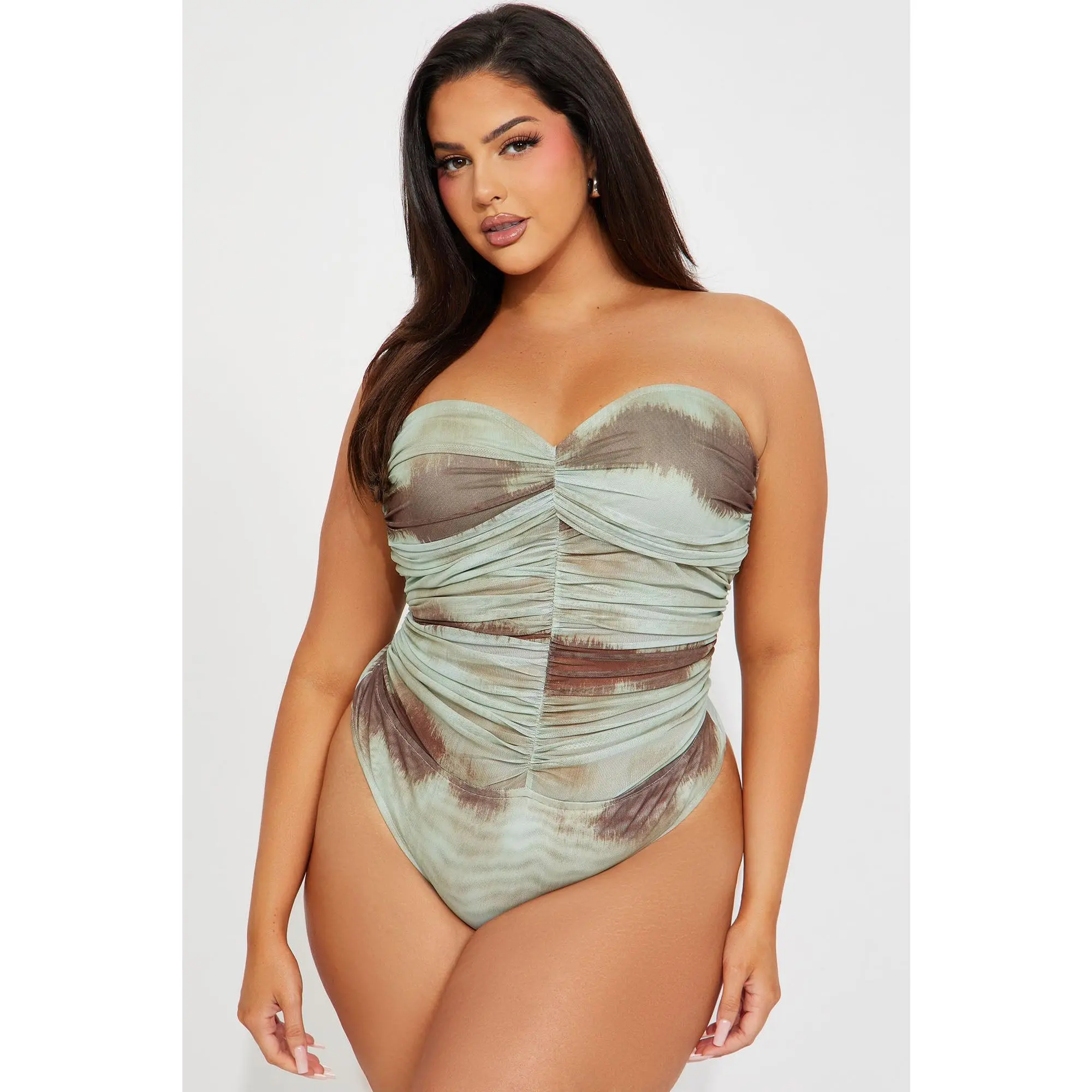 Drinks On The Beach Ruched Bodysuit - Sage/combo