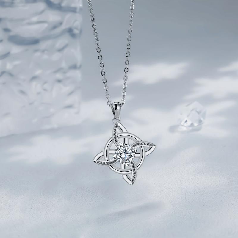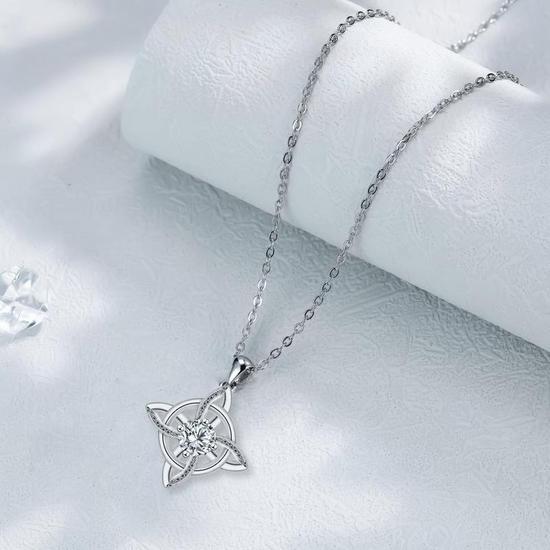 Channel Hecate-inspired witchy style with a sleek witches knot pendant featuring a premium cubic zirconia center. Made with copper plated in silver, this necklace is designed for everyday wear and easy layering, with an adjustable 18" + 2" cable chain.