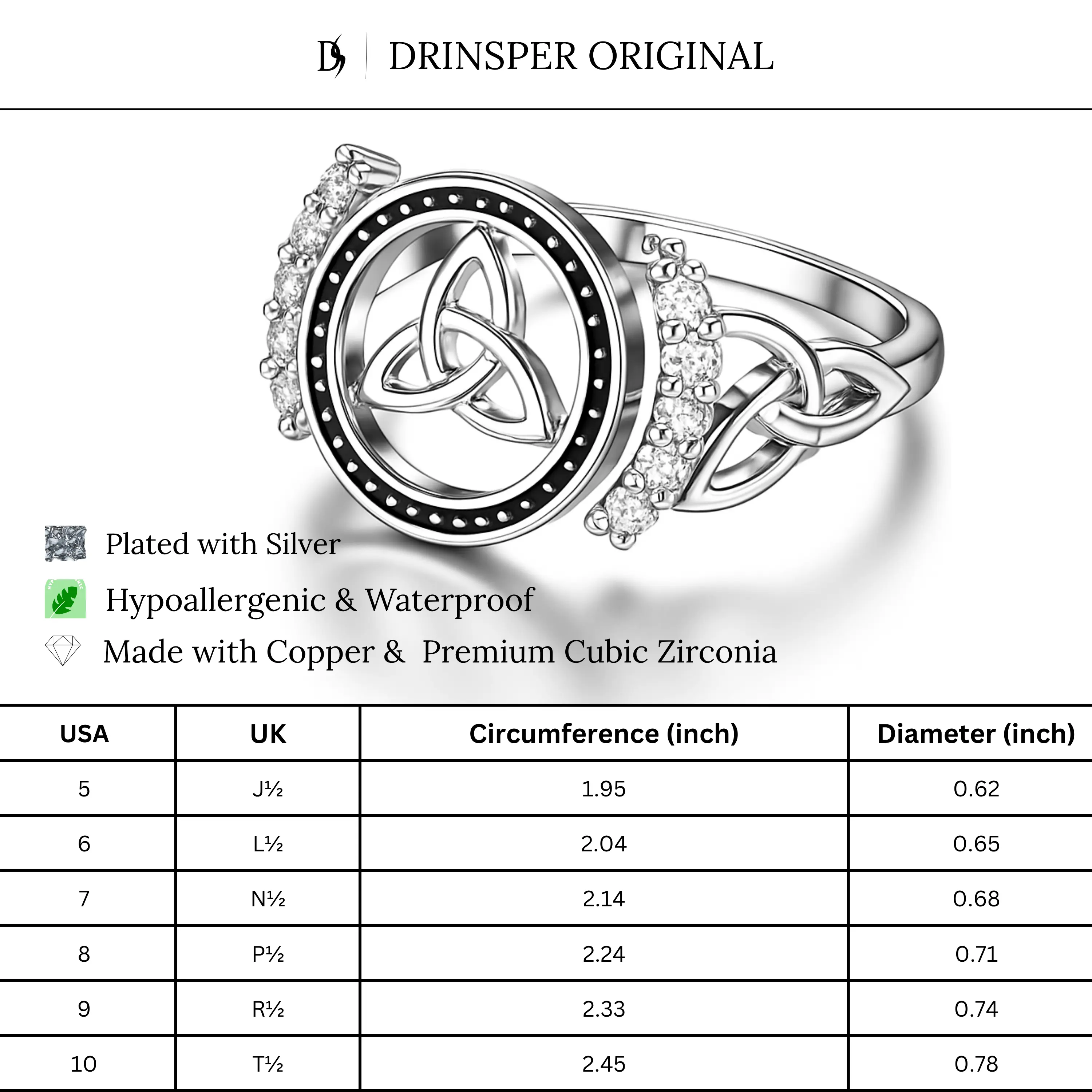 ·Discover the allure of ancient symbolism with the DRINSPER Witch's Knot Ring. This piece blends vintage aesthetics with mystical charm, centered around a sparkling cubic zirconia. It's a statement of style and spiritual connection, perfect for the modern woman.