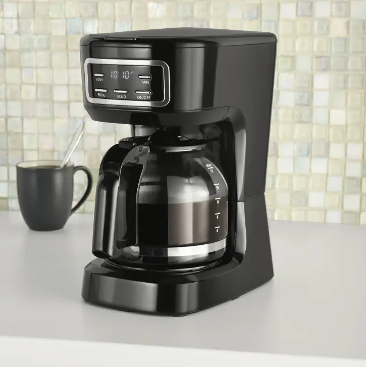 Black 12-Cup Programmable Drip Coffee Maker - Compact Design for Versatile Coffee Making