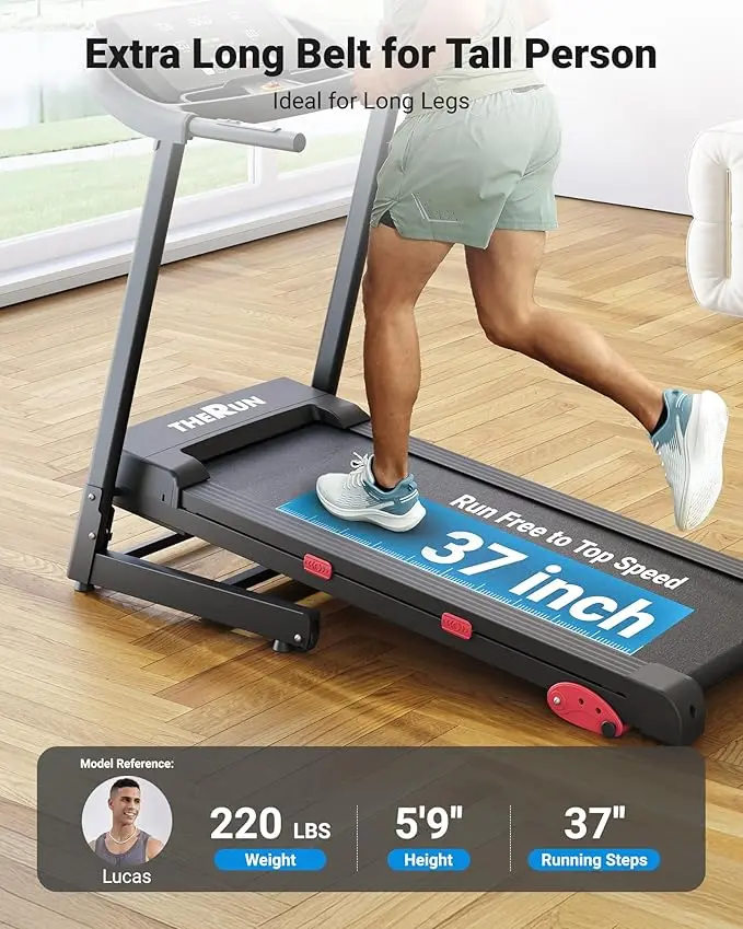 ·Advanced Shock Absorption: 43.3''x 16.5'' running area with a non-slip surface and advanced shock absorption system.