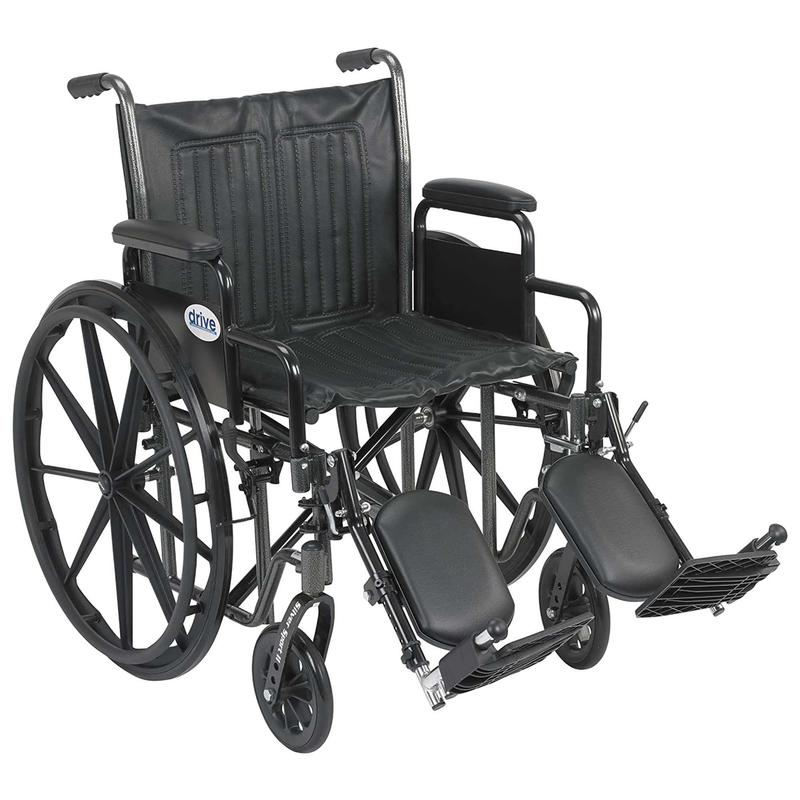 As a mobility aid user, you need something reliable to get you from Point A to Point B while maintaining your comfort. The Drive Medical The Silver Sport 2 Wheelchair with 20-Inch Wide Seat does just that.The manual wheelchair's urethane tires are mounted on composite wheels to provide durability and a smooth ride over most surfaces. Because this mobility aid goes everywhere with you, it's constructed of sturdy and easy-to-clean powder-coated steel with embossed vinyl upholstery.The sleek wheelchair is also lightweight, weighing only 45 pounds, great for wheelchair users and care assistants. The carry pocket on the backrest provides an easy and safe way to transport personal items. This durable wheelchair comes standard with swing-away footrests, padded detachable desk arms, push to lock brakes, and plastic footplates making it a versatile component to your everyday life.Nothing gets in your way, nothing. Wherever you need to go, the Drive Medical The Silver Sport 2 Wheelchair with 20-Inch Wide Seat will help you get there.