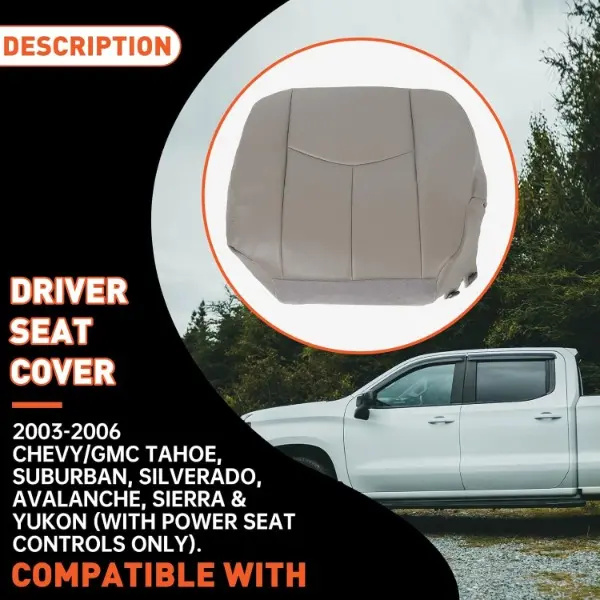 5. Seat Cover Front Driver Side Bottom Compatible with 2003-2006 Chevy Tahoe Avalanche Silverado Suburban GMC Yukon 922 Pewter Synthetic Leather Seat Cover Truck Cushion Protector Car Accessories Replacement