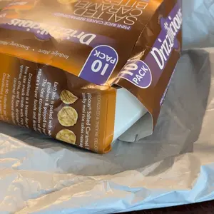 The delivery box was crushed, so the product box was crushed, so to say the least, some of the rice cakes were crumbs.
