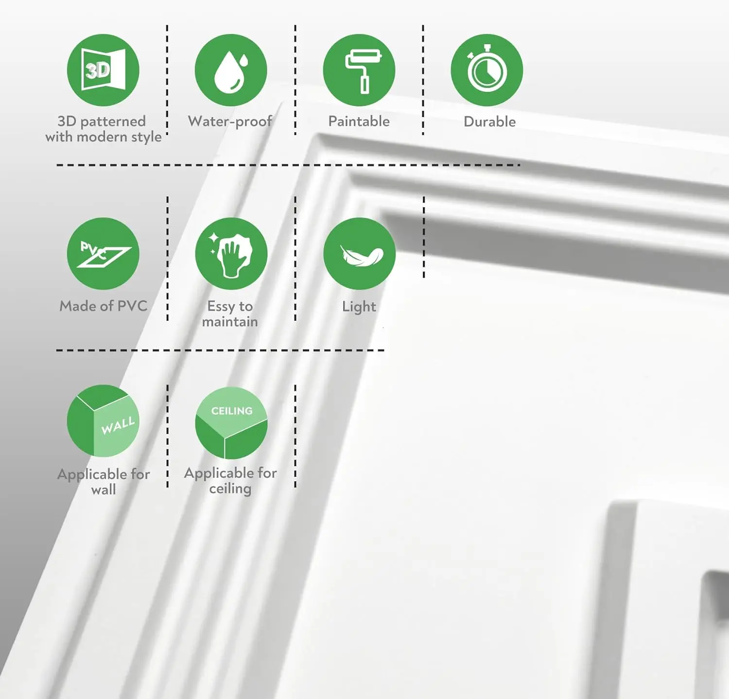 ·Multipurpose: These elegant stylish 3D designs are excellent no matter for remodeling or new construction to ceiling or wall decoration. Also a great choice to accent featured wall design.
