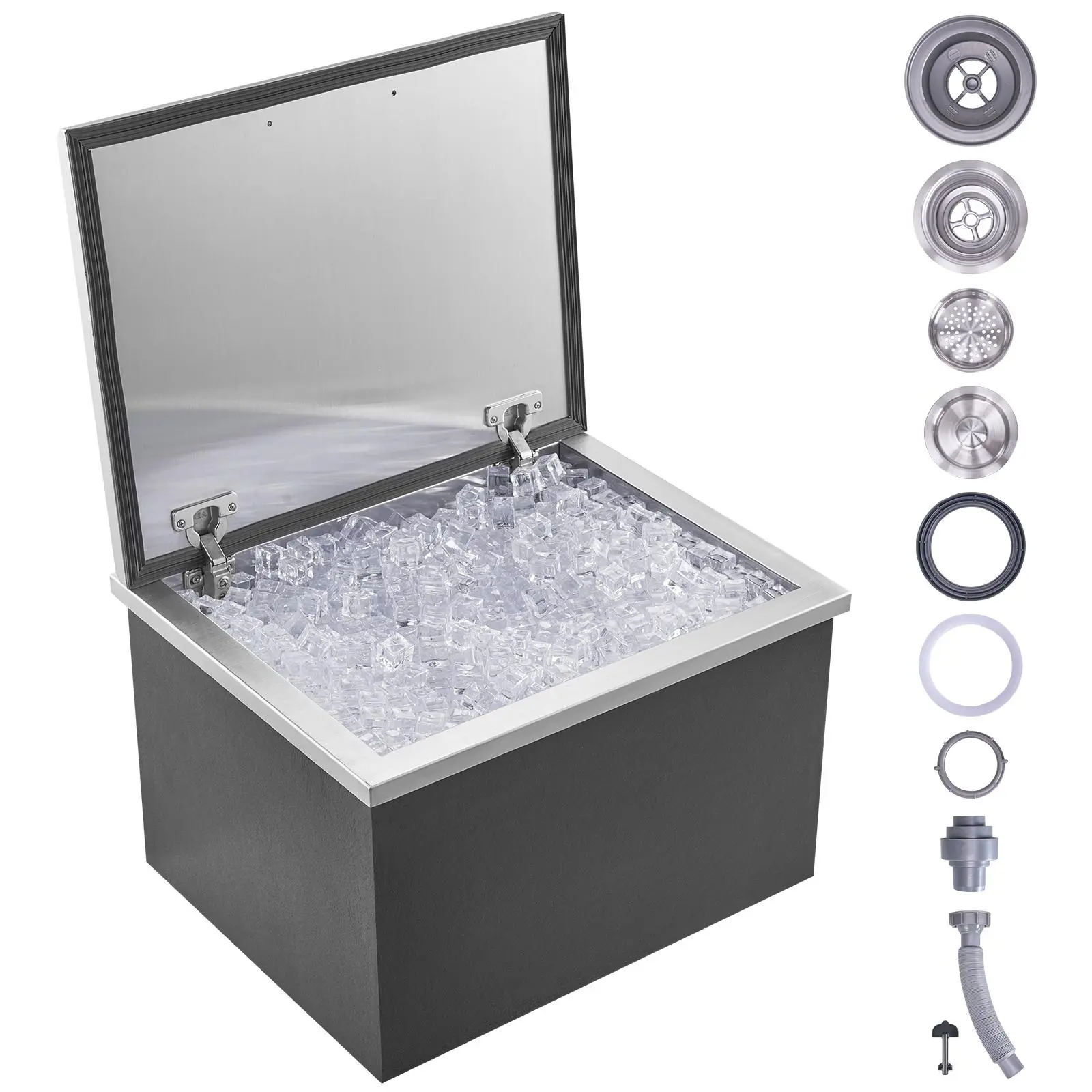 • Additional Details: Specially equipped with a filter-style water pipe for easy installation and use. It quickly drains accumulated water, maintaining dryness and hygiene inside the ice chest. The filter mesh prevents ice cubes from falling out.