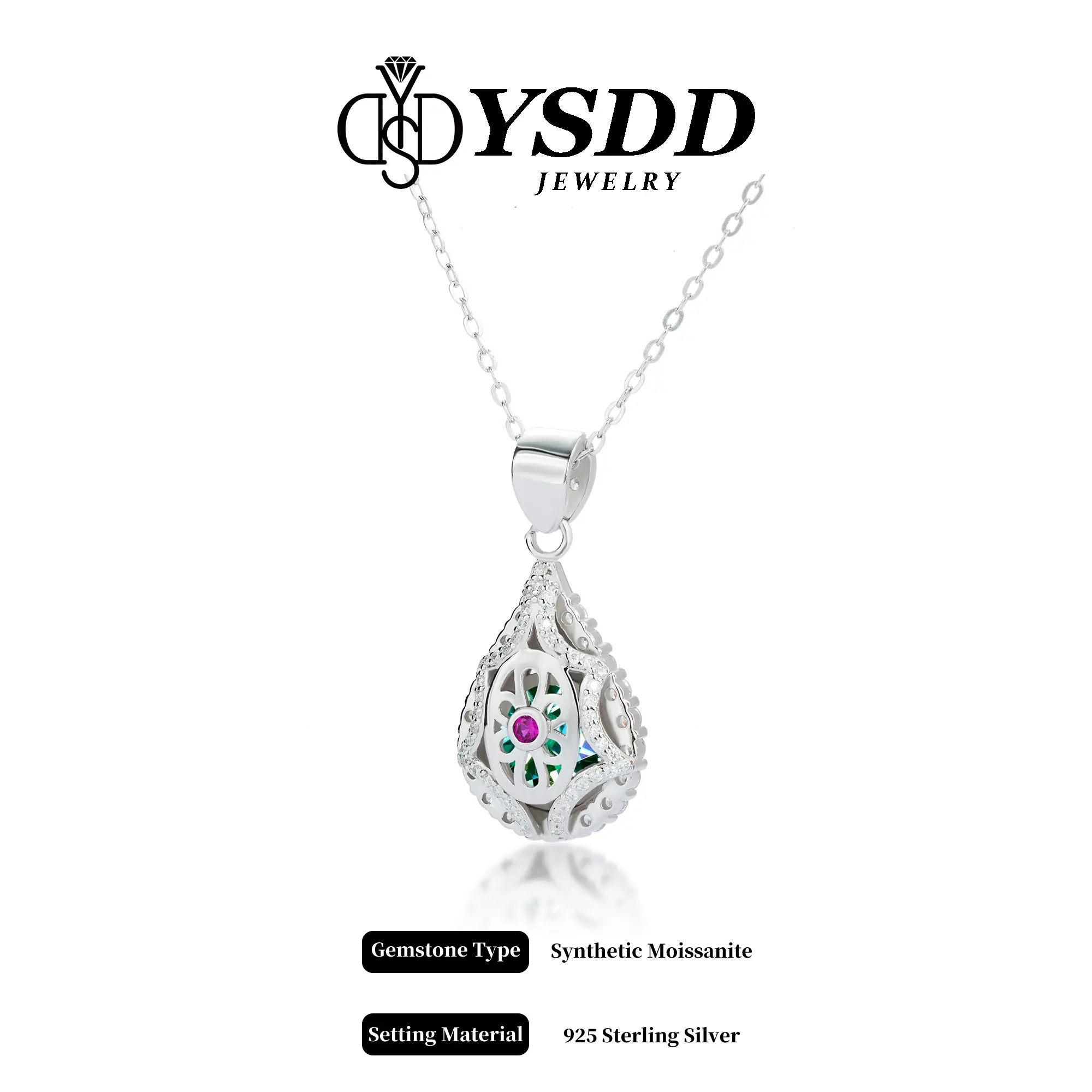 5. 【#64 Drop Pendant】5Carat Synthetic Moissanite Necklace in 925 Sterling Silver SpringStatements