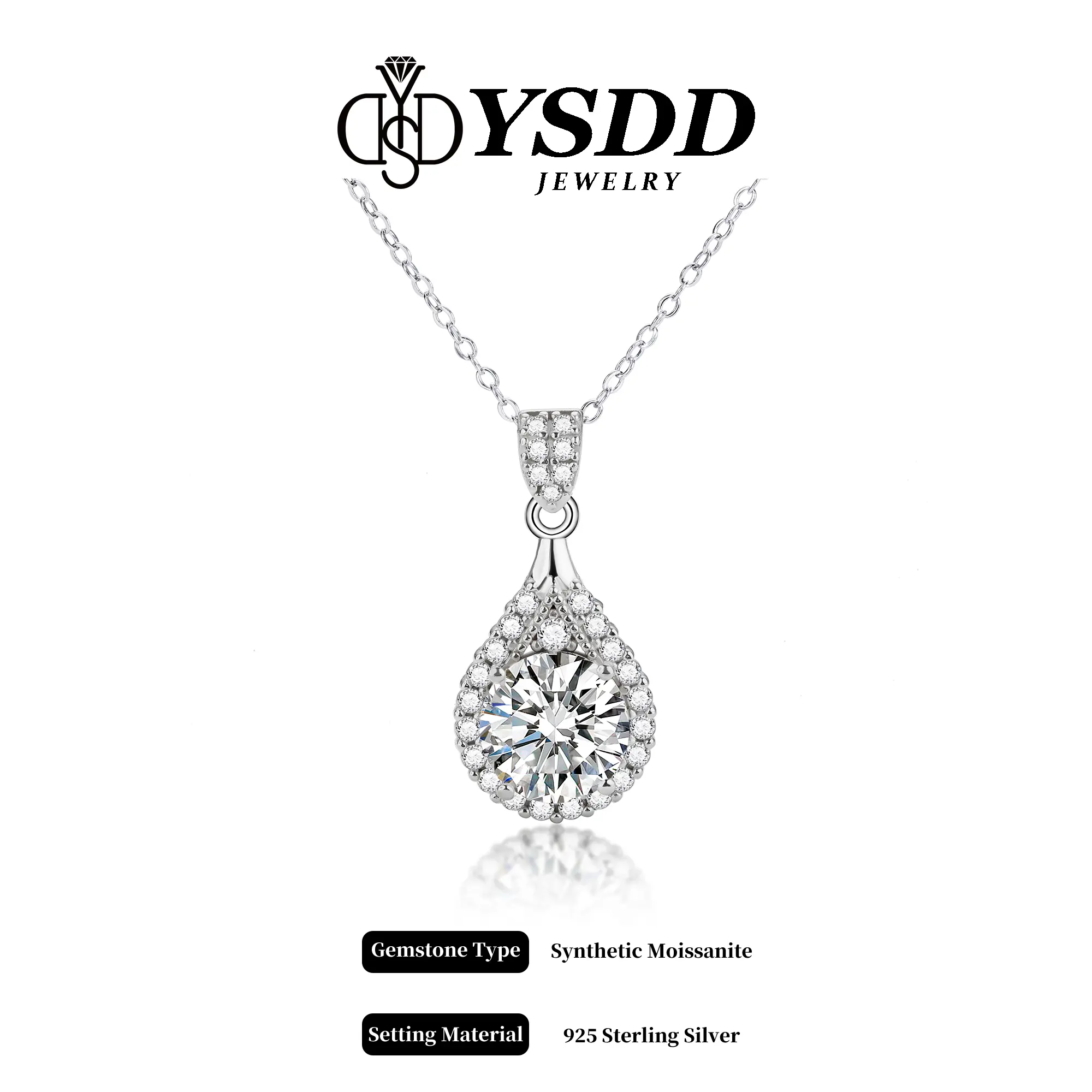 【#64 Drop Pendant】5Carat Synthetic Moissanite Necklace in 925 Sterling Silver SpringStatements