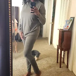 Love this set. Buttery feel. So smooth. True to size.. I purchased 3 sets 2 small and 1 medium. The brown is medium. You can dress up or down. Put a tank shirt under it.