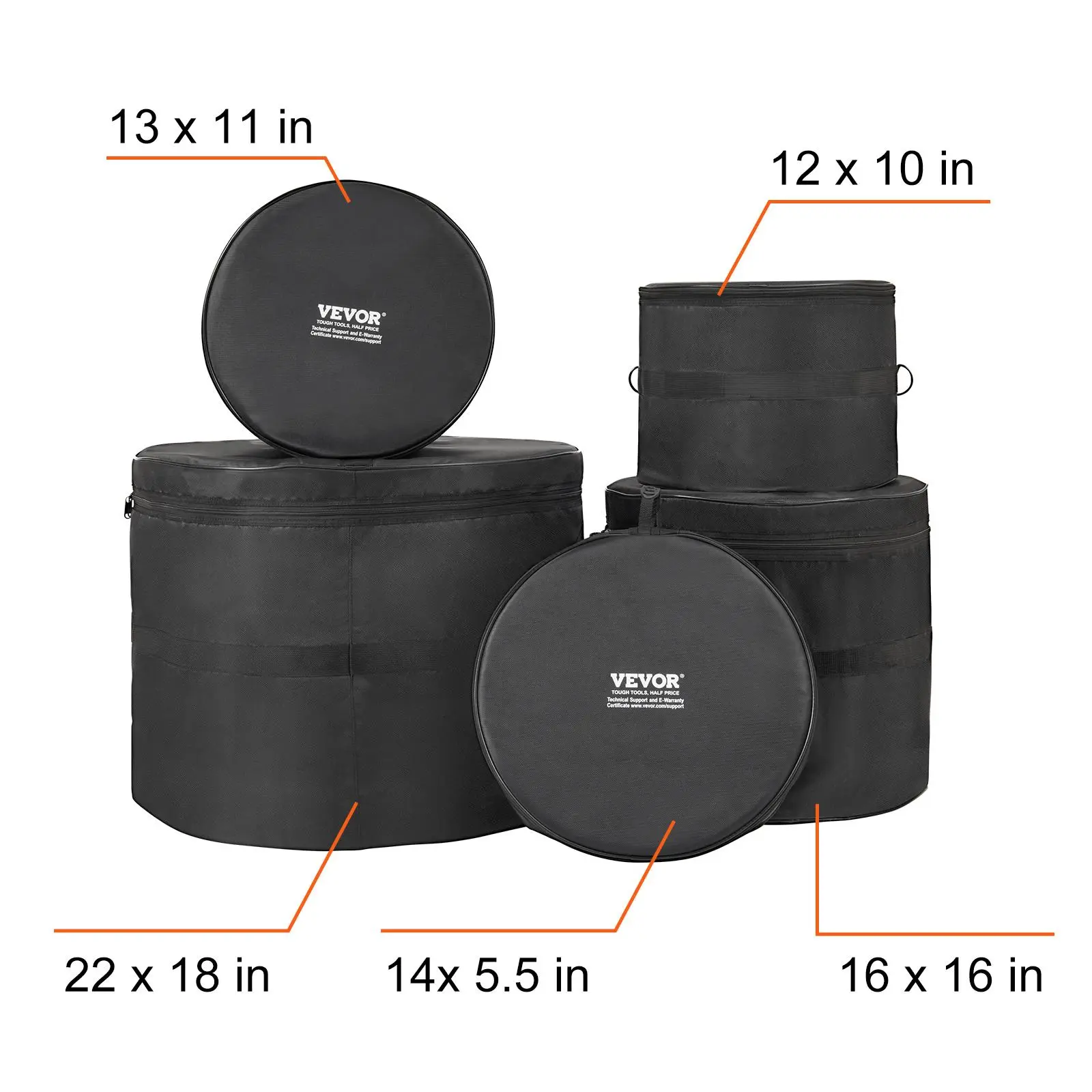 5. VEVOR 5-Piece Drum Bag Kit, Durable 1680D Oxford Material, Cushioned Cases with 1.5m Removable Shoulder Strap and Carry Handles, Collapsible, Fits 22'' Bass, 12''/13''/16'' Toms, 14'' Snare