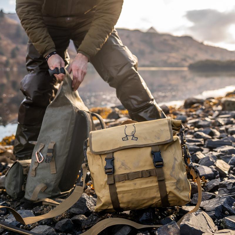 Crafted from rugged 500D PVC Tarpaulin and Mil-Spec webbing, this bag is built to withstand the toughest hunts. Available in Covert Green, Field Tan, & Otter Brown.