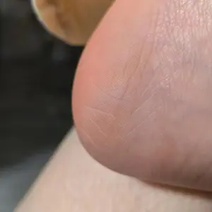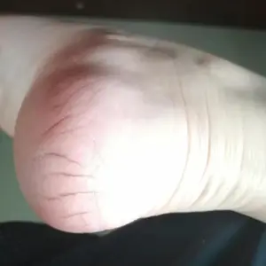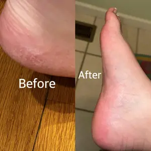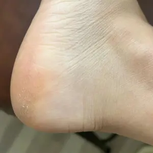 The cracked heel is almost healed and feels smooth after applying the cream.