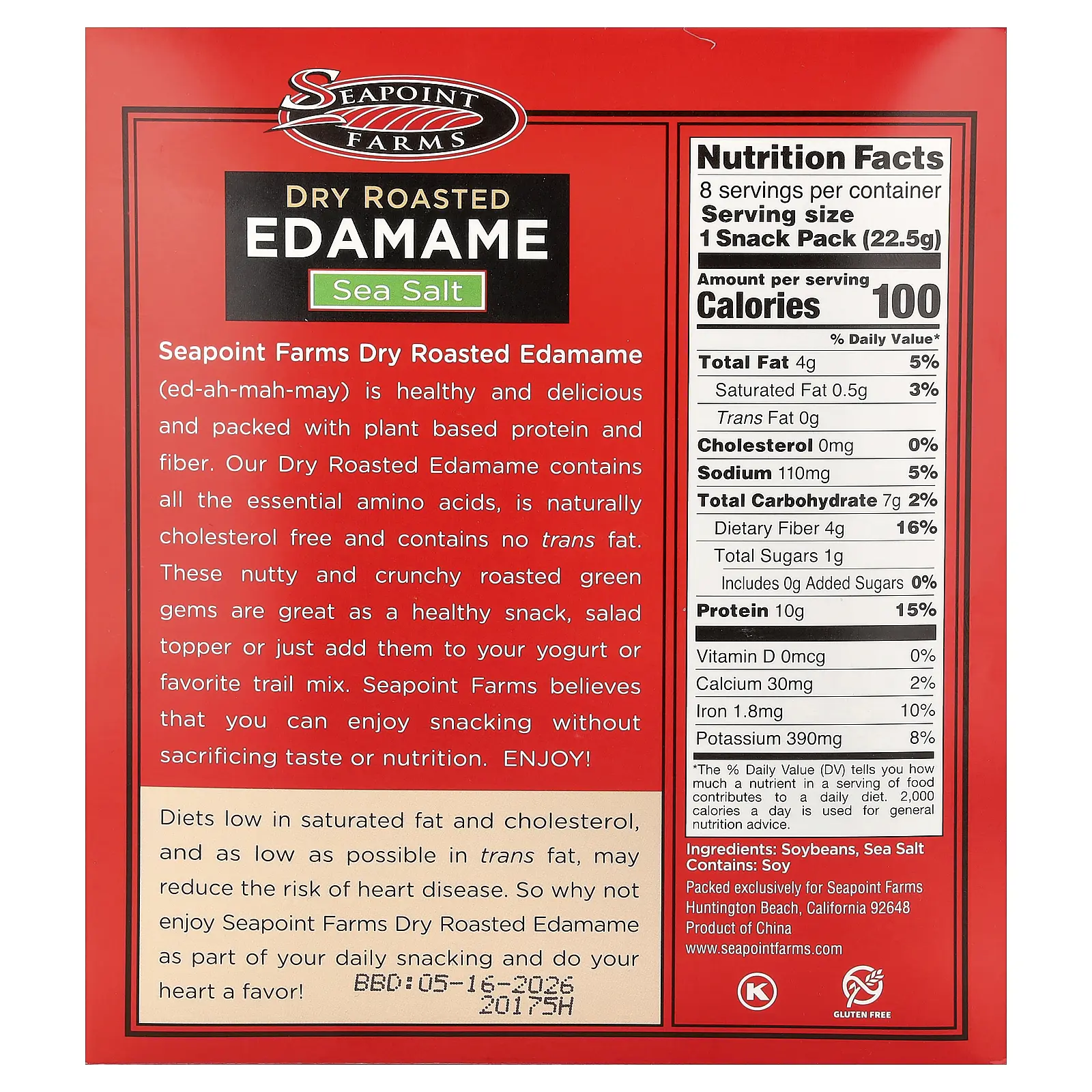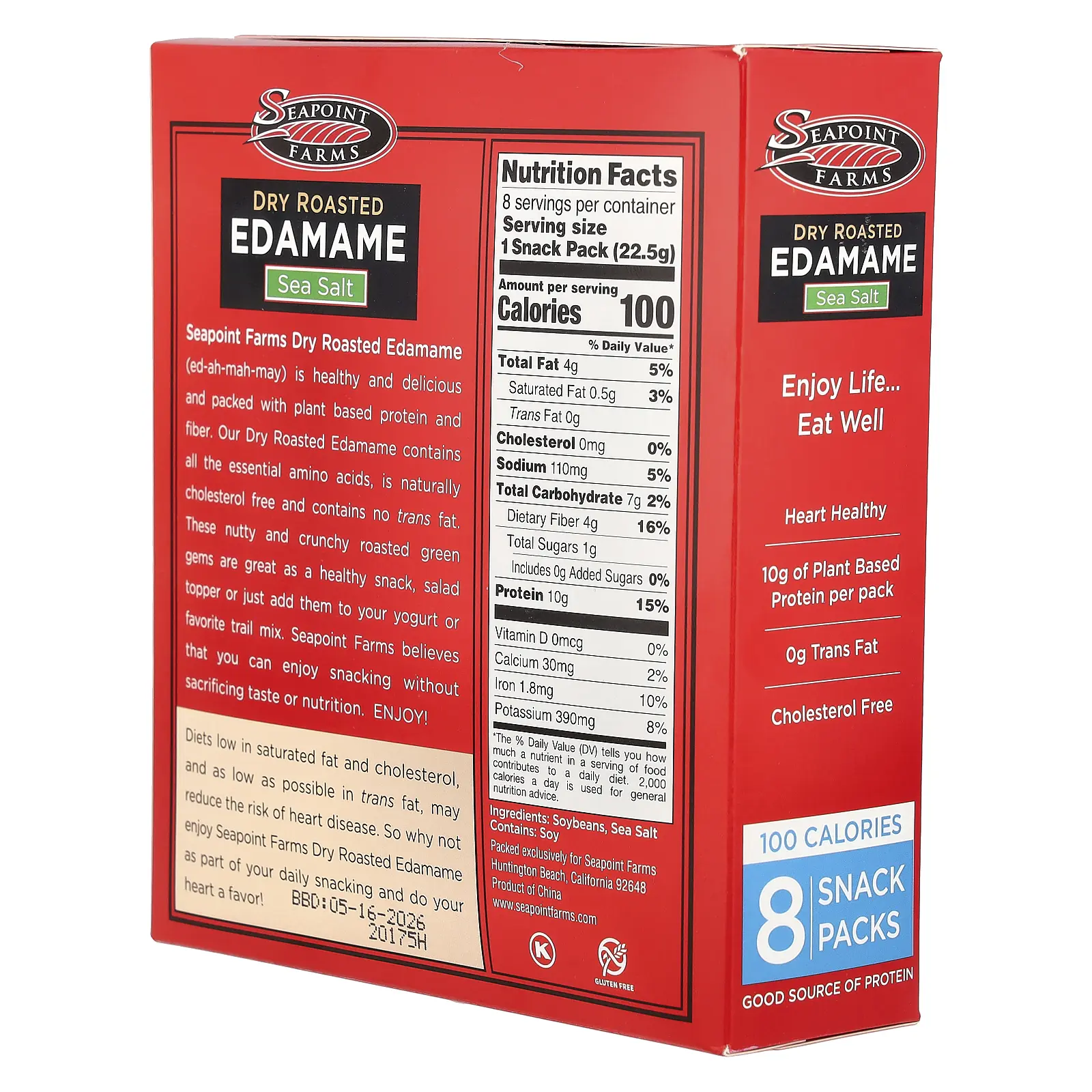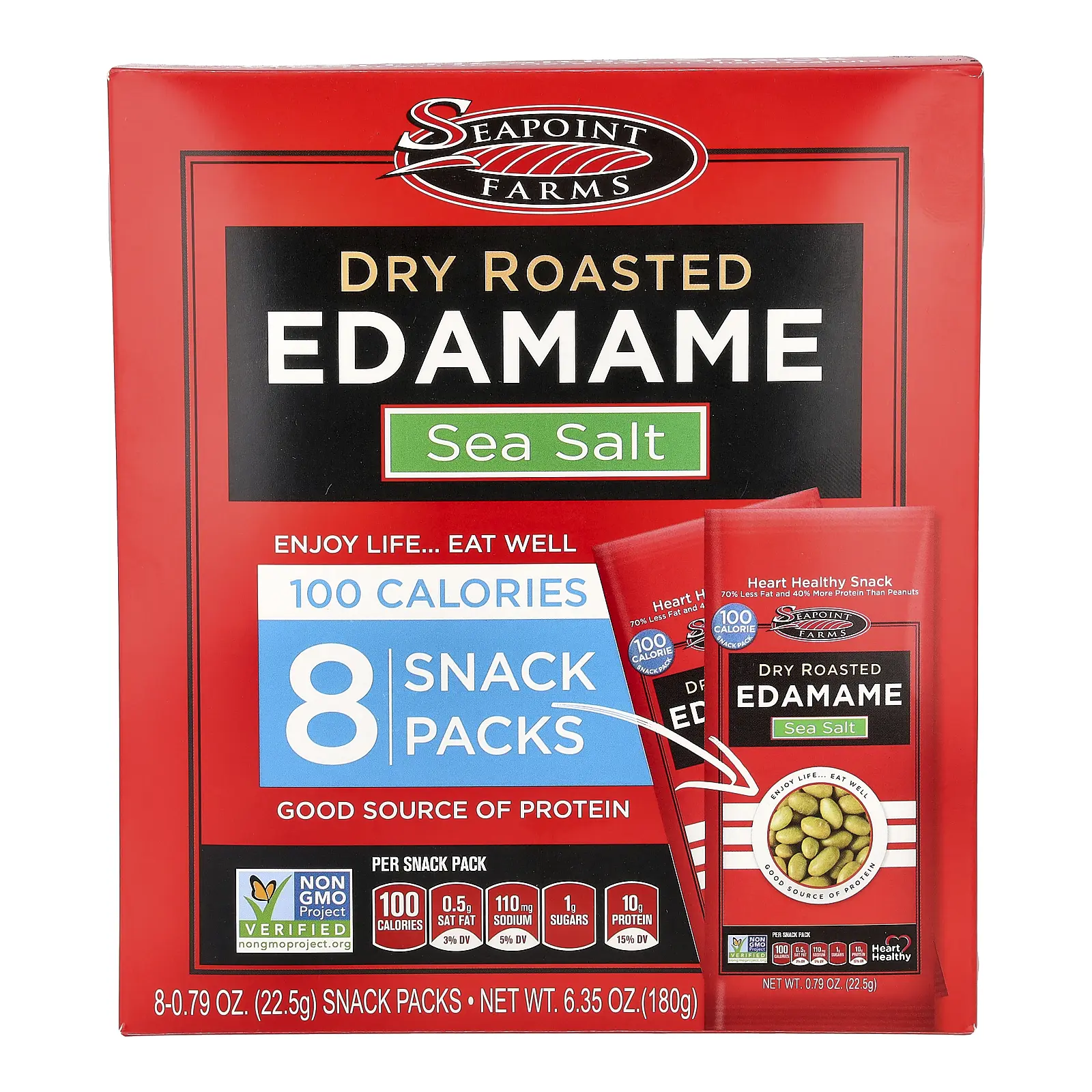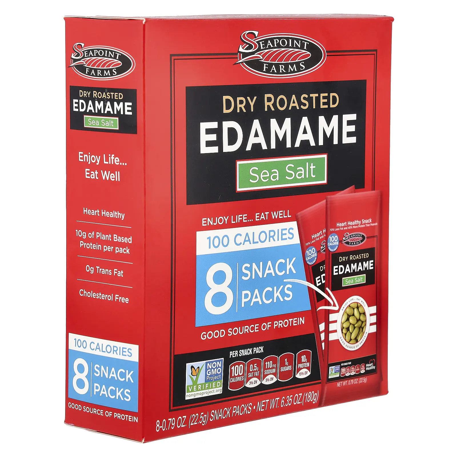 5. Seapoint Farms Dry Roasted Edamame, Sea Salt, 8 Snack Packs, 0.79 oz (22.5 g) Each