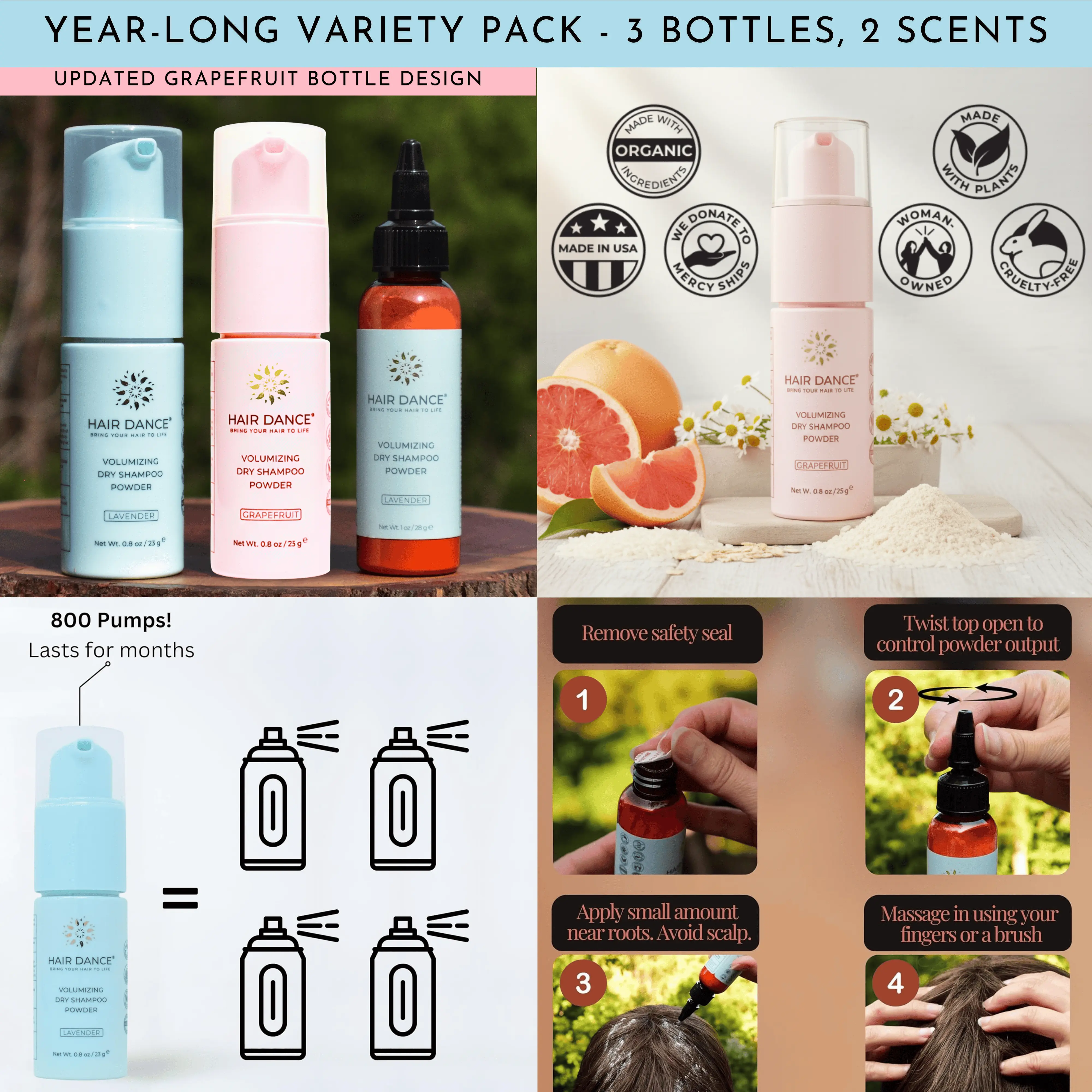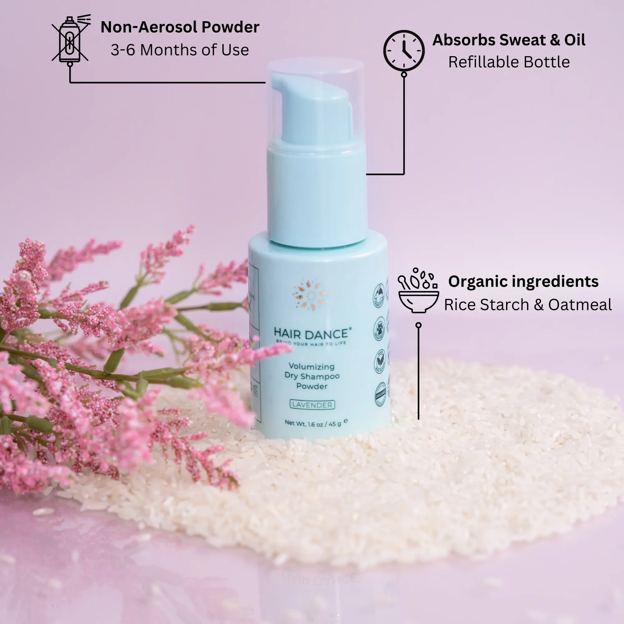 ·Perfect for refreshing your hair during busy mornings when you don't have time to wash your hair. Also great to use after any work-outs, during camping, and while traveling. Absorbs excess oil and adds instant volume to any hair style