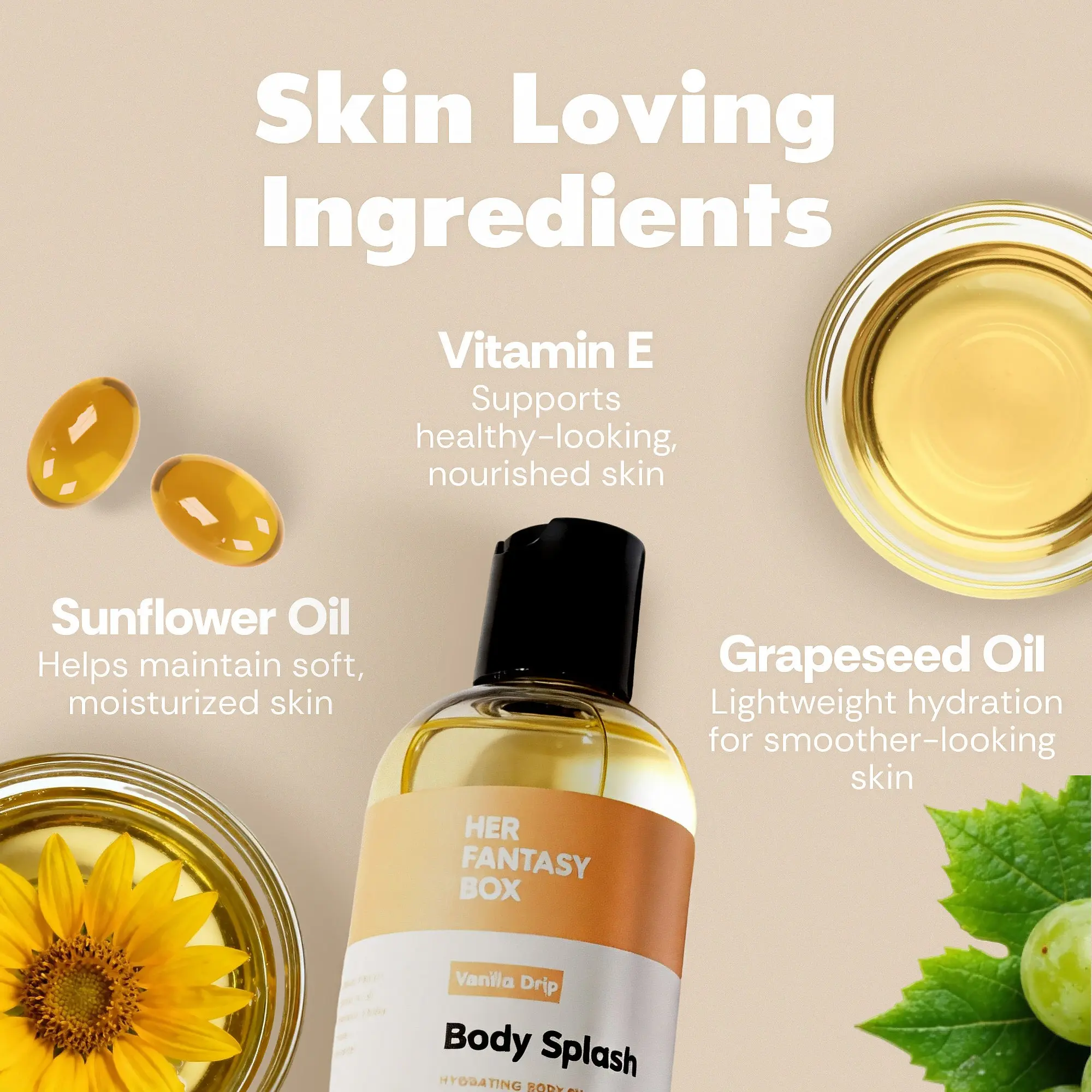 ·Vanilla Drip Body Splash OilA lightweight body oil with skin-loving oils that absorbs quickly and leaves skin feeling soft, smooth, and lightly scented with warm vanilla crème.