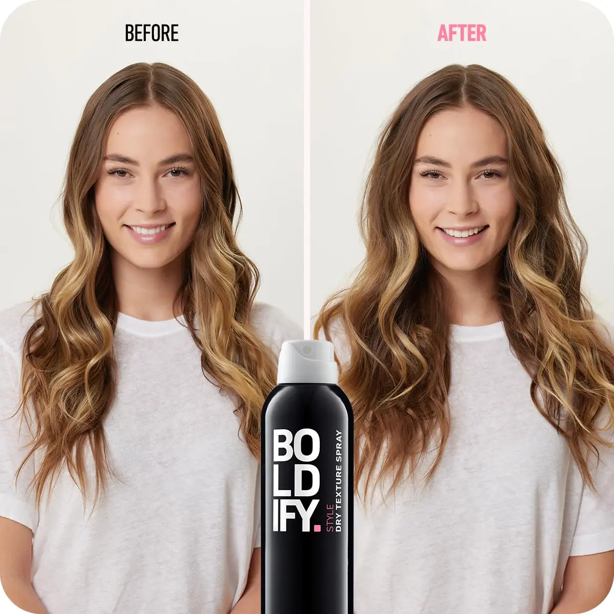 BoldIFY works on any hair type, from pin-straight to thick curls. It amplifies, defines, and maintains your ideal style without damaging chemicals. It can be used as a pre-styler for braids, messy buns, and updos. It is a next-level dry shampoo alternative, lifting and texturizing hair on day one.