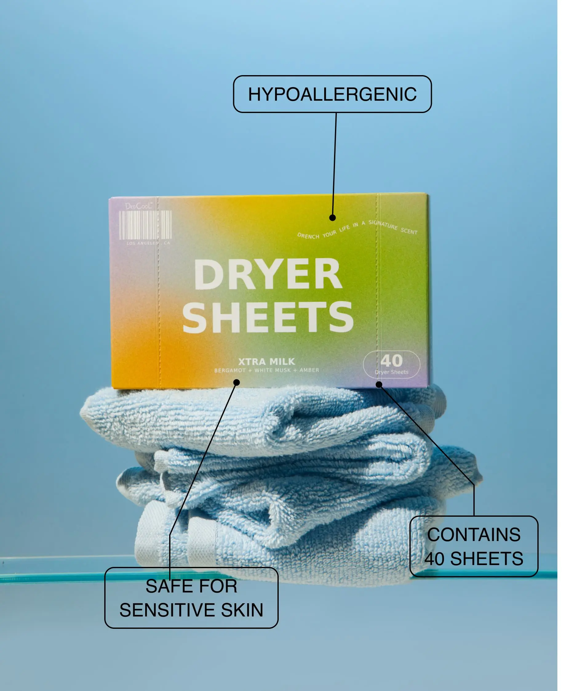 Dryer sheets add just the right amount of the signature xtra milk scent to your laundry without being too much. It’s delightful.