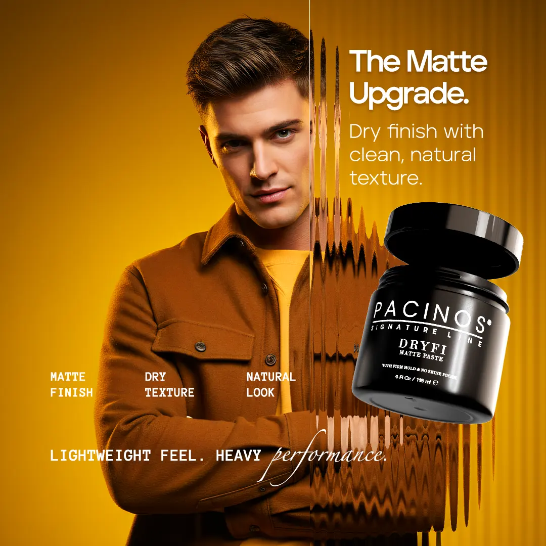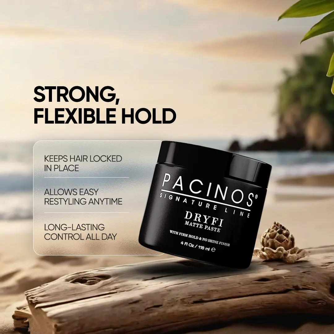 Pacinos DRYFI is a No Shine Matte Paste with a Medium Hold.