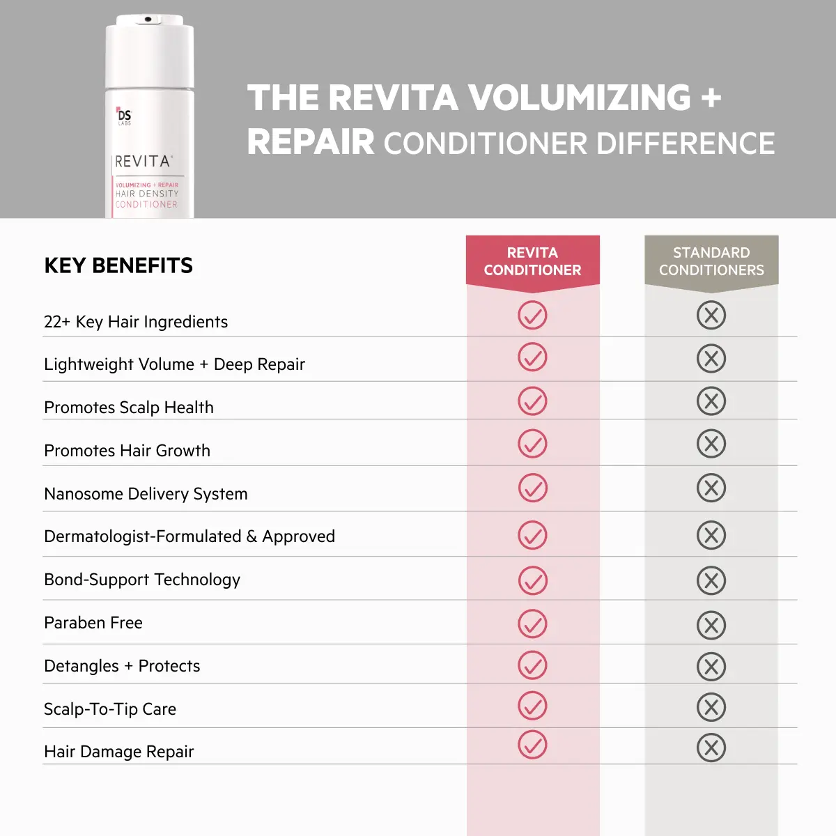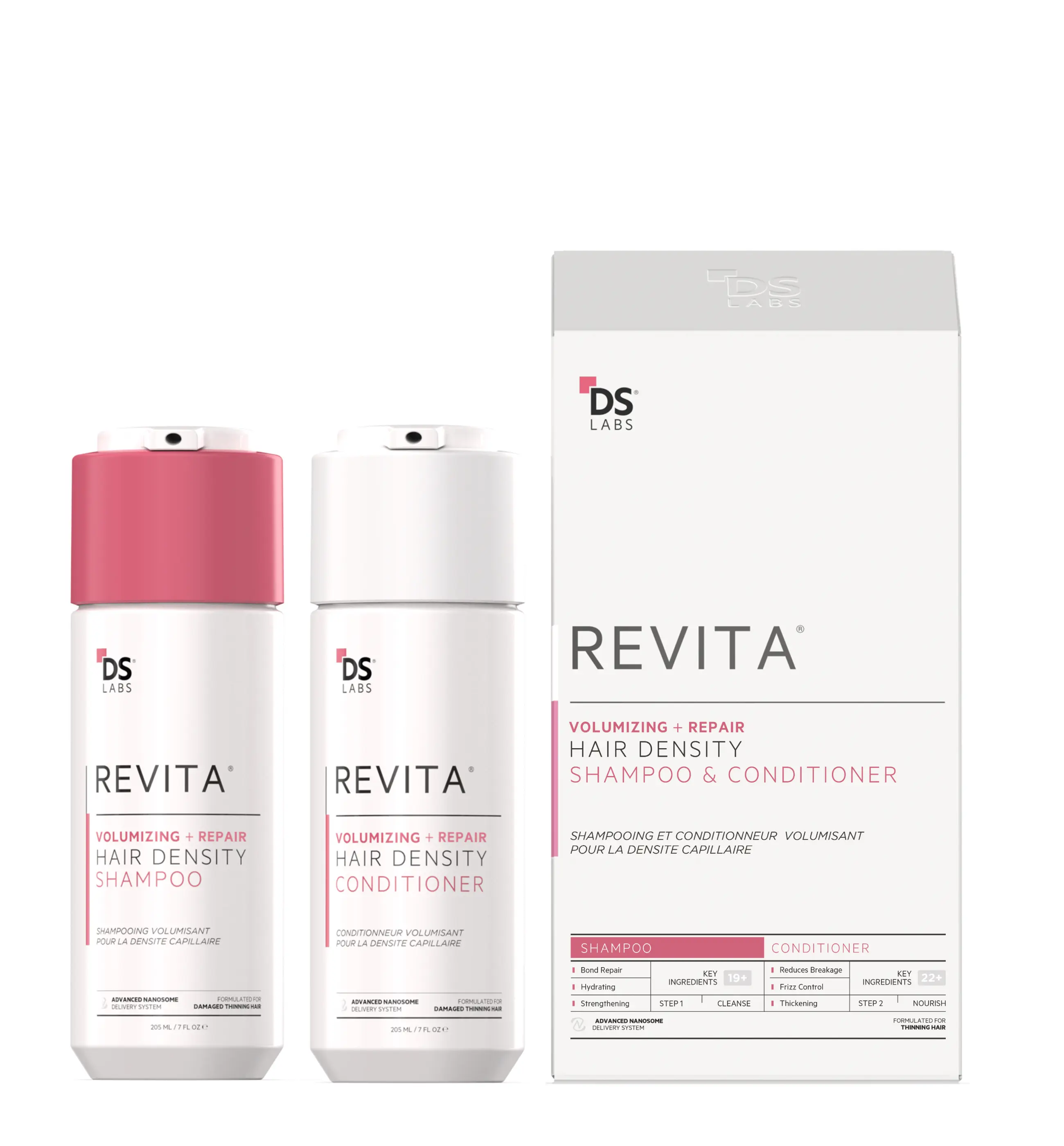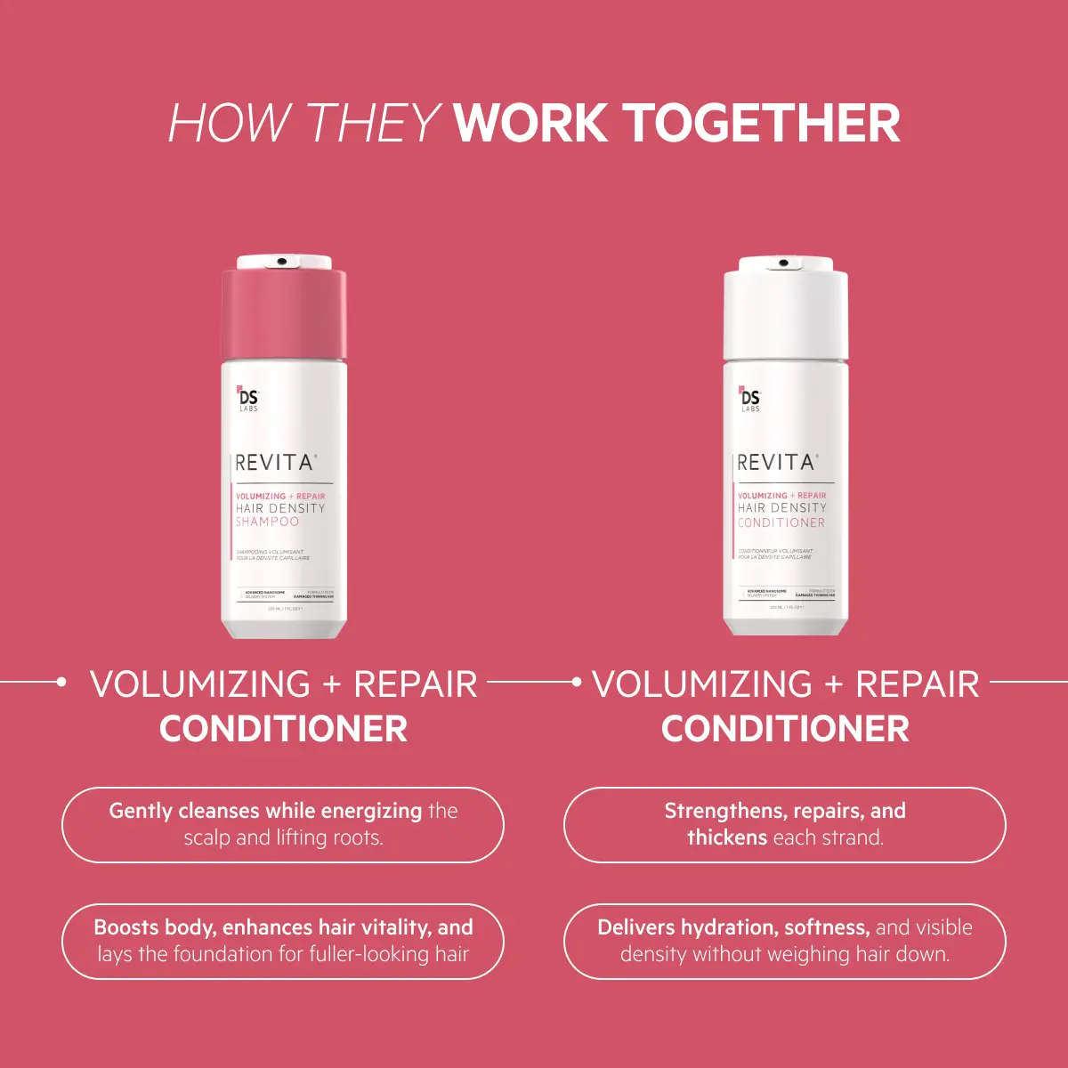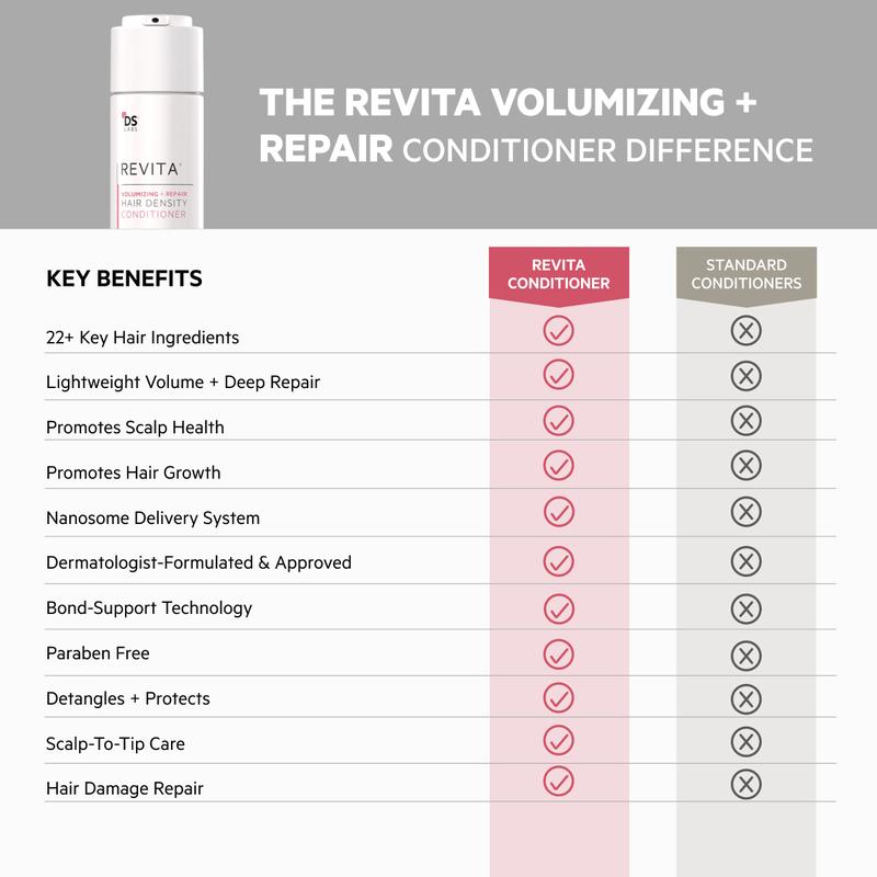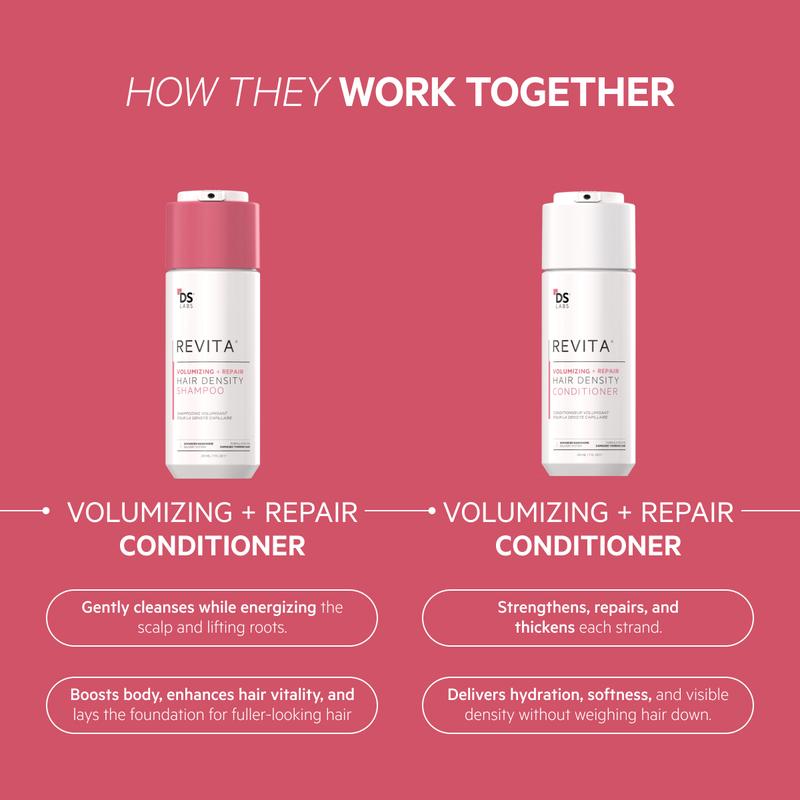 The Revita Volumizing Kit delivers a double dose of density and repair. Powered by dermatologist-backed science and cutting-edge botanical actives, this two-step system is designed to visibly boost volume while addressing thinning, breakage, and dullness. The shampoo gently cleanses and lifts roots, while the conditioner strengthens, nourishes, and thickens each strand. The result? Visibly fuller, stronger, shinier hair — from root to tip.