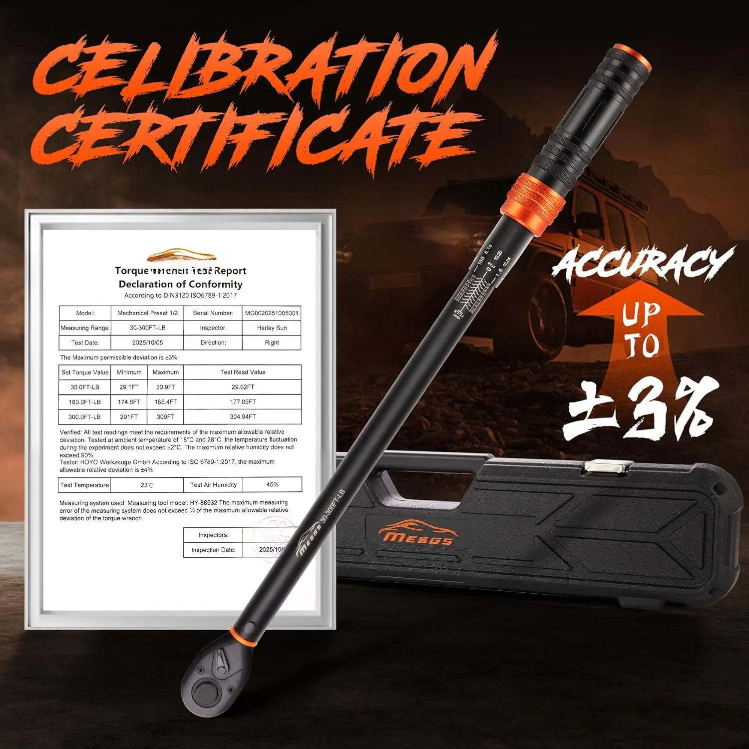 【 &Quick Reading】: 1/2 torque wrench has high contrast and dual range scale(30-300 Ft.Lb/40.7-406.8Nm),making it clear and easy to read. We have professional torque wrench production technology, and after 50000 tests, the calibration error range of the torque wrench is ± 3%, , and comes with a corresponding serial number, which is easy to trace the data, and you can use it with confidence