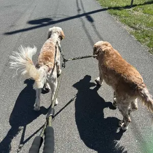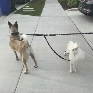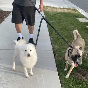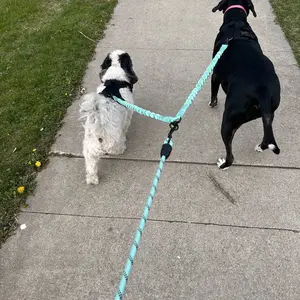 I have two GIANT dogs (over 100 lbs) that have gained a lot of weight because it's winter and i (mommy) refuse to go in the cold. Daddy couldn't take them alone because of pulling and tangling - until now! Leash is SUPER sturdy, they can cross each other, and walking 2 at once is a breeze! 10/10.