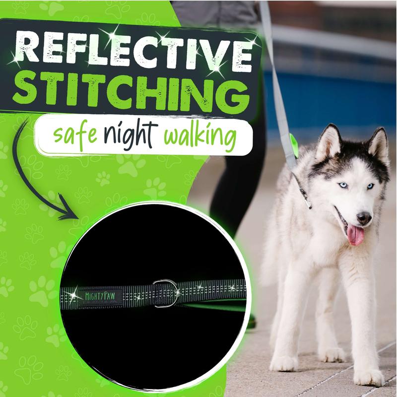 Experience unparalleled control with the Mighty Paw Dual Handle Dog Leash 2.0. This innovative leash features two handles: the main handle for regular walking and a secondary handle closer to the collar for extra control. Perfect for high-traffic areas, it keeps your dog in check effortlessly.