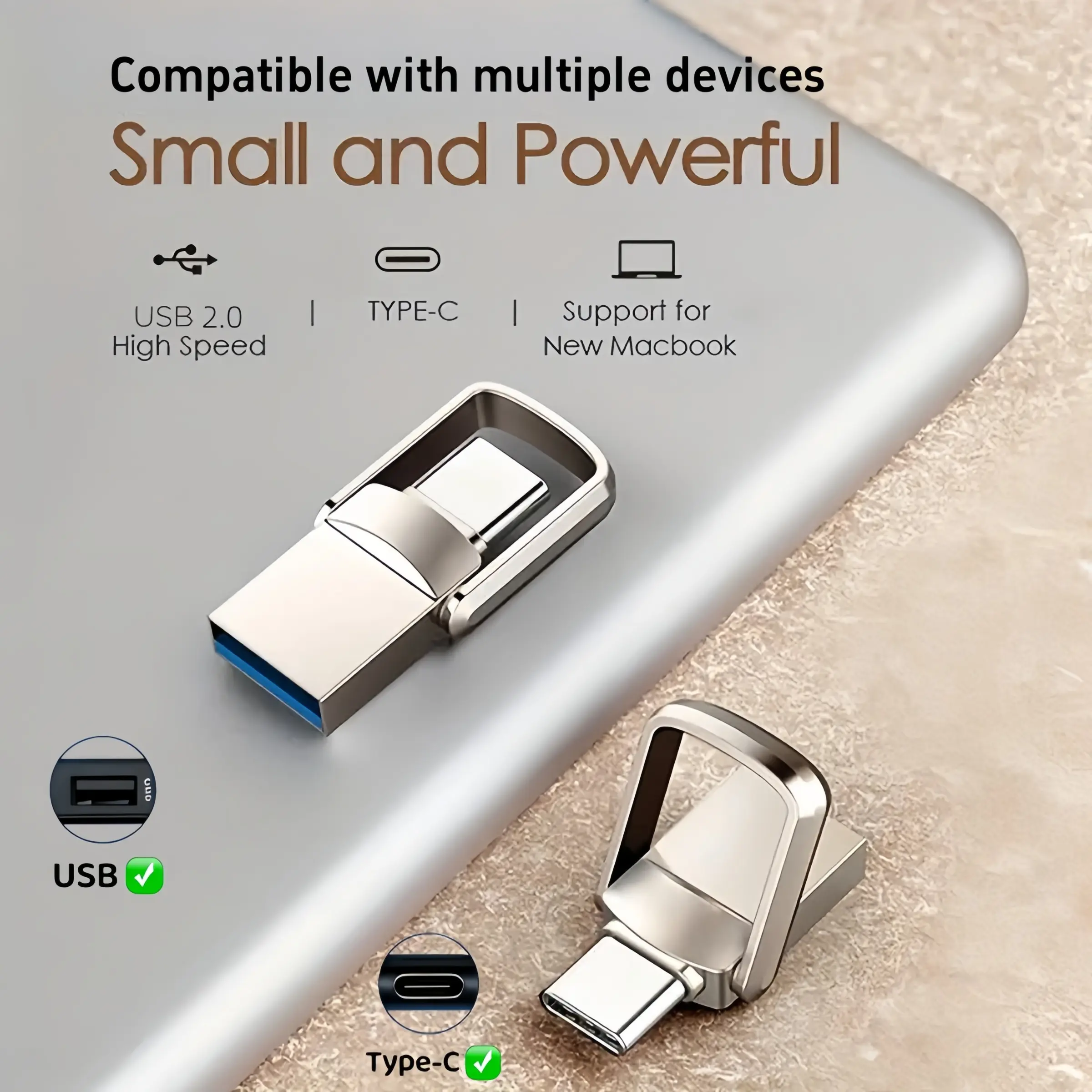 Dual Interface High-Speed Mini USB 2.0 Flash Drive, USB Flash Drives, 128GB/100GB/64GB/32GB Options, Portable for Computer, Mac, Smartphone, Tablet, Type-C/USB Portable Pen Drive, New MacBook, High-Speed USB Memory Stick Without Battery