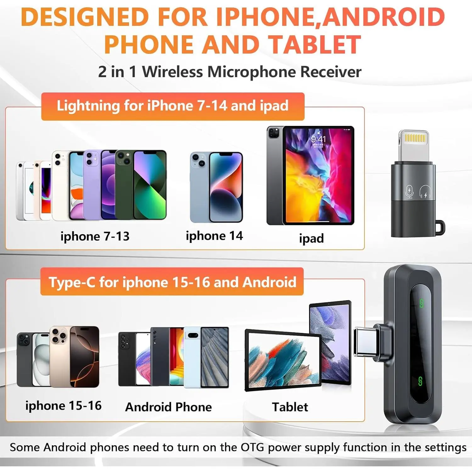 Excellent Compatibility: The microphone is dual compatible with Lightning and Type C interfaces. Whether you are using an Android or iOS device, you can easily connect our microphone, for podcasts, interviews, blogs, vlogs and more