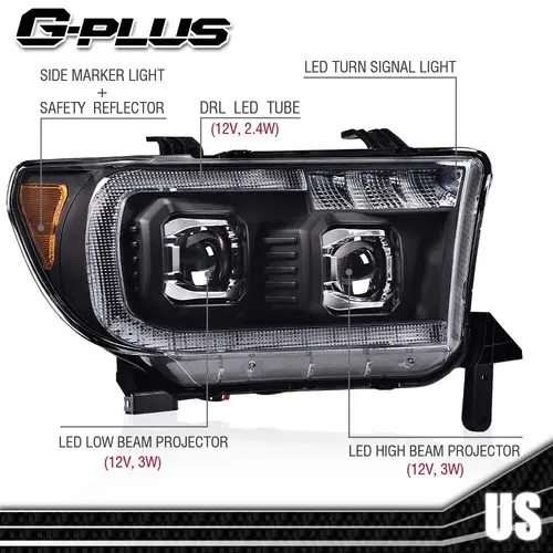 For 2007-2013 Toyota Tundra For2008-2017 Toyota Sequoia [2-Door Regular Cab | 4-Door Extended Cab | 4-Door Crew Cab | 4-Door Sport Utility] ATTENTION:Tundra Models w/ Headlight Leveling will Lose this Function w/ these Headlights