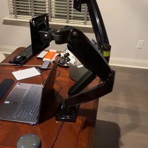 Great quality, decently easy to set up (spring lever takes a bit of effort to loosen) but I’d rather it a bit more effort for something of great quality. Cable management aspect is great and would recommend this to anyone in need of monitor arms.