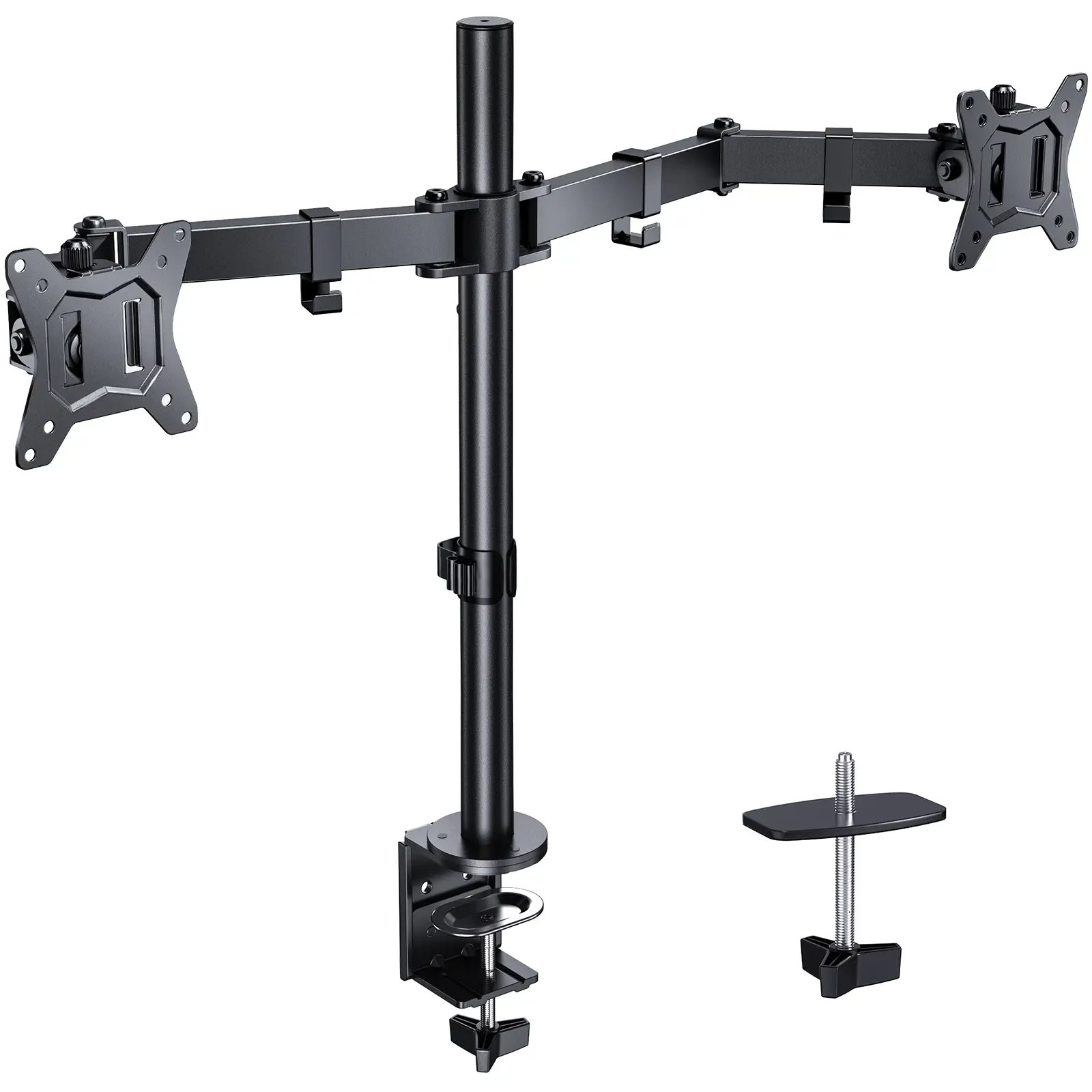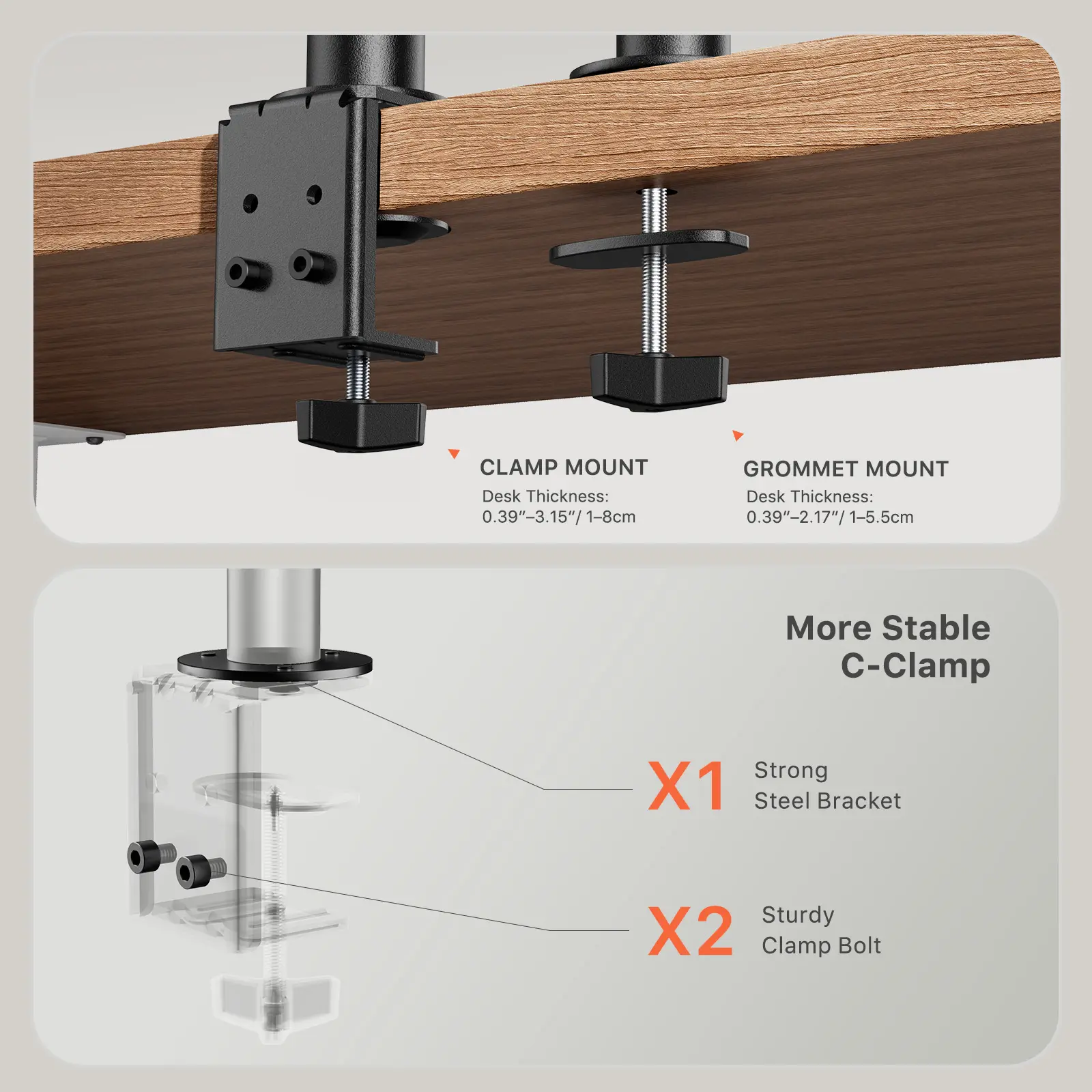 ·Space Saver: Maximize your workspace with our efficient desk monitor mount. Elevate your monitors to free up valuable desk space for other essentials, helping you declutter and optimize your work area.
