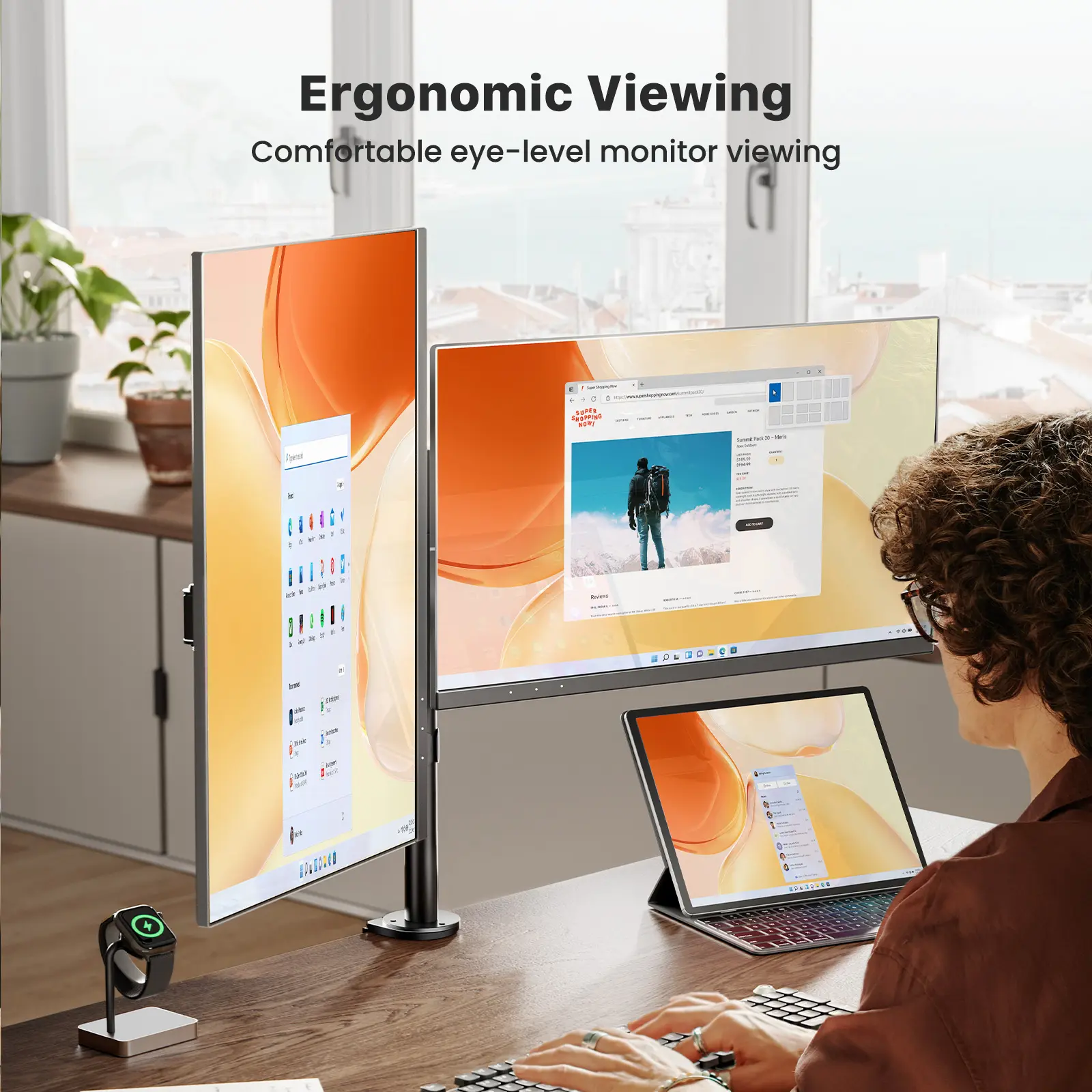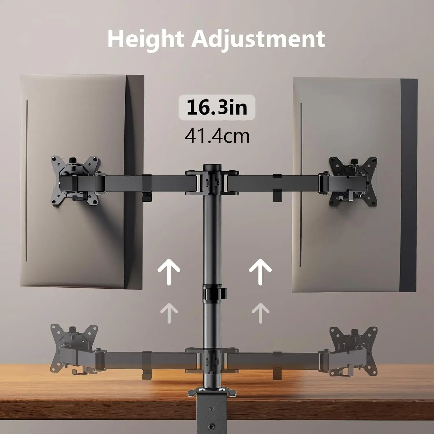 ·Enhanced Comfort: Say goodbye to neck, shoulder, and back strain with our computer monitor mount. The adjustable arms of this 2 monitor desk mount reach up to 16.3 inches high, providing ergonomic viewing comfort and improving your posture.