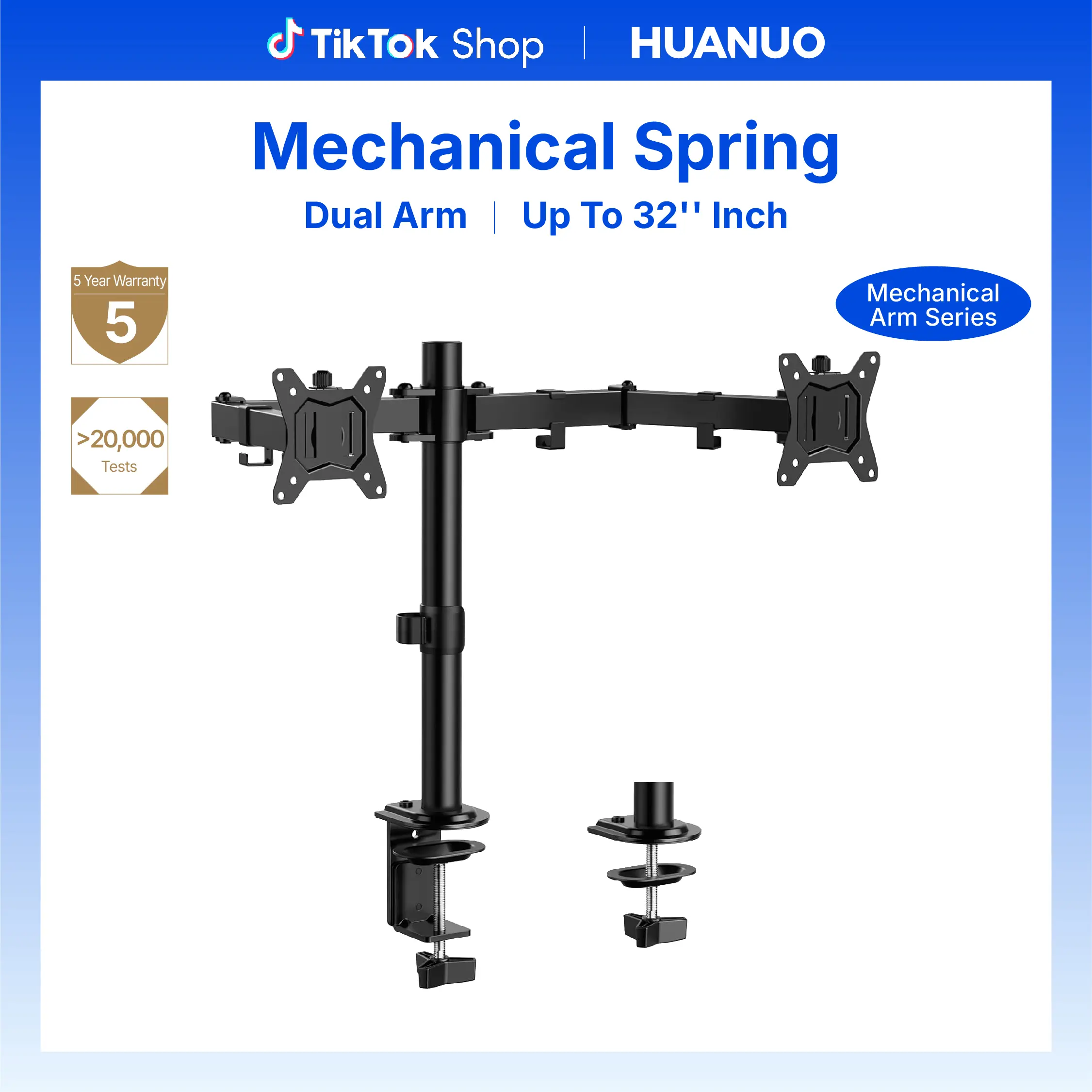·Durable Build with Assurance: Built to last, our huanuo dual monitor stand features a reinforced steel design with an extra base plate and sturdy C-clamp. Enjoy peace of mind with warranty and friendly tech support, knowing your dual monitor desk mount is reliable and robust.