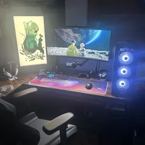 Took me a few hours to set up, mainly to figure out where to place it on my L Desk, used the grommet since I need it to reach the sim racing setup on the desk